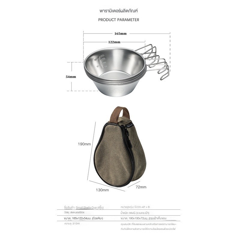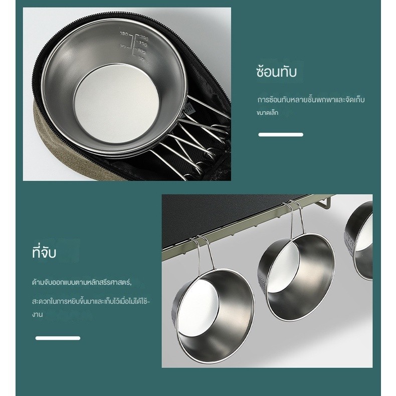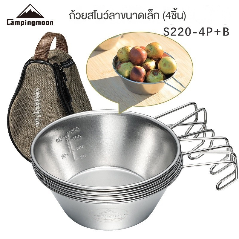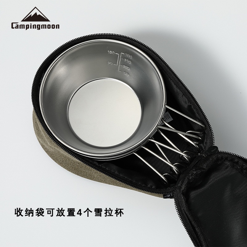 จัดส่งที่รวดเร็ว Campingmoon S220-4P + B Camping Outdoor Picnic 4 ชิ้นอุปกรณ์เก็บกระเป๋า 304 สแตนเลสขนาดเล็กหิมะถ้วยอุปกรณ์ตั้งแคมป์