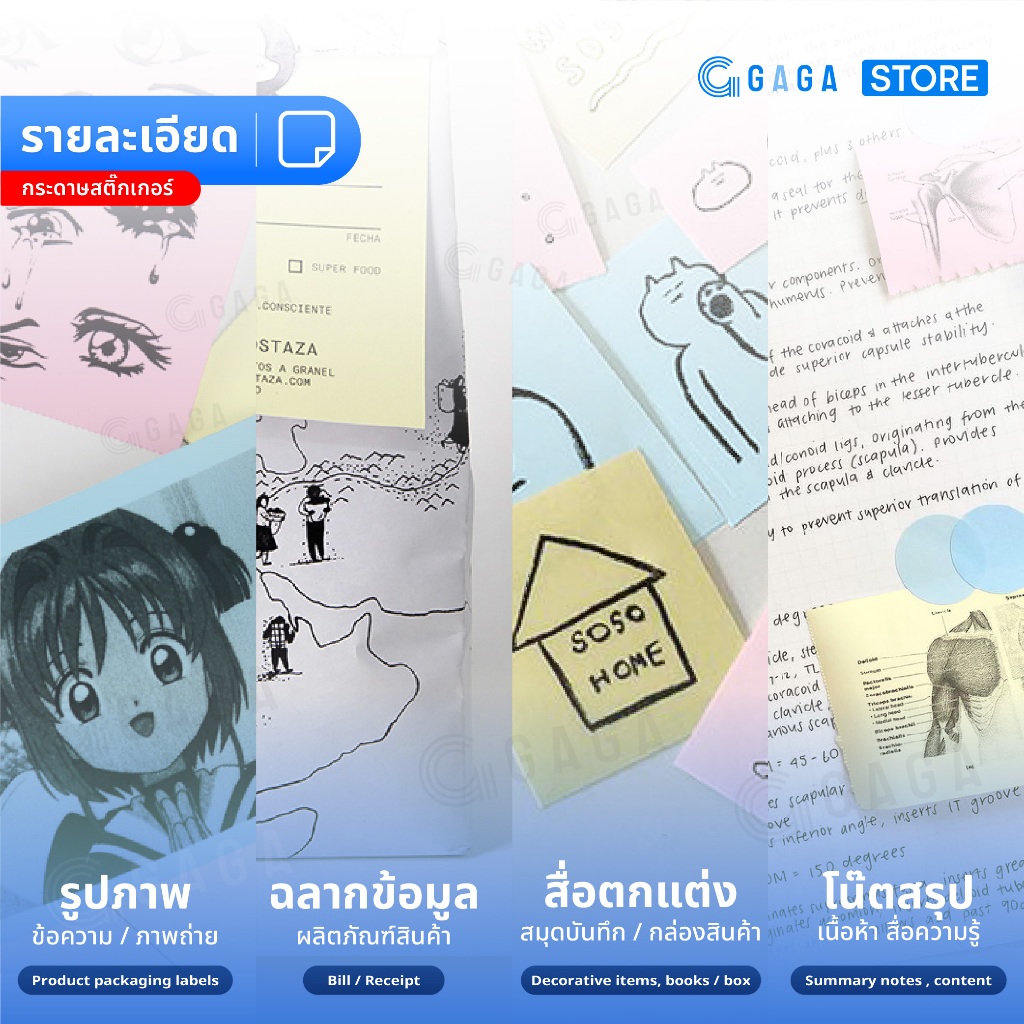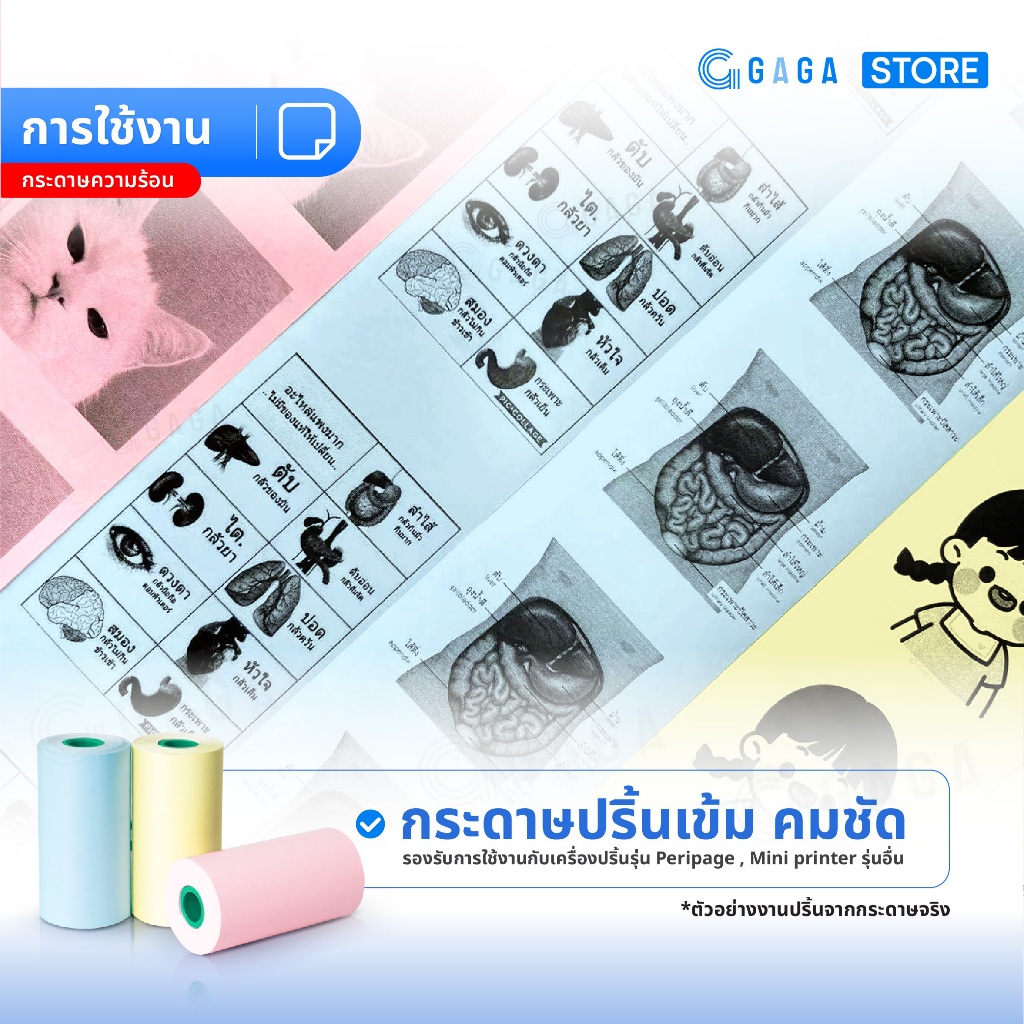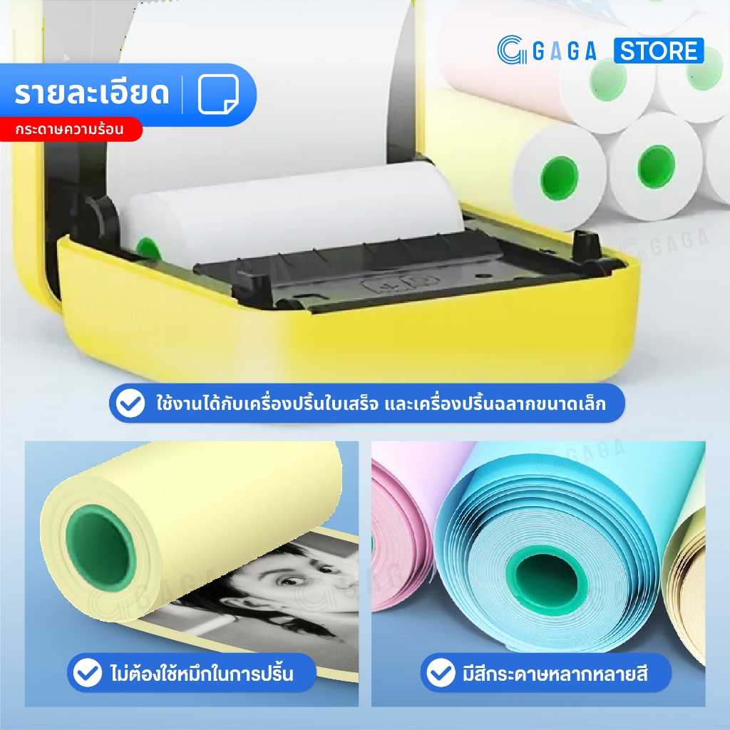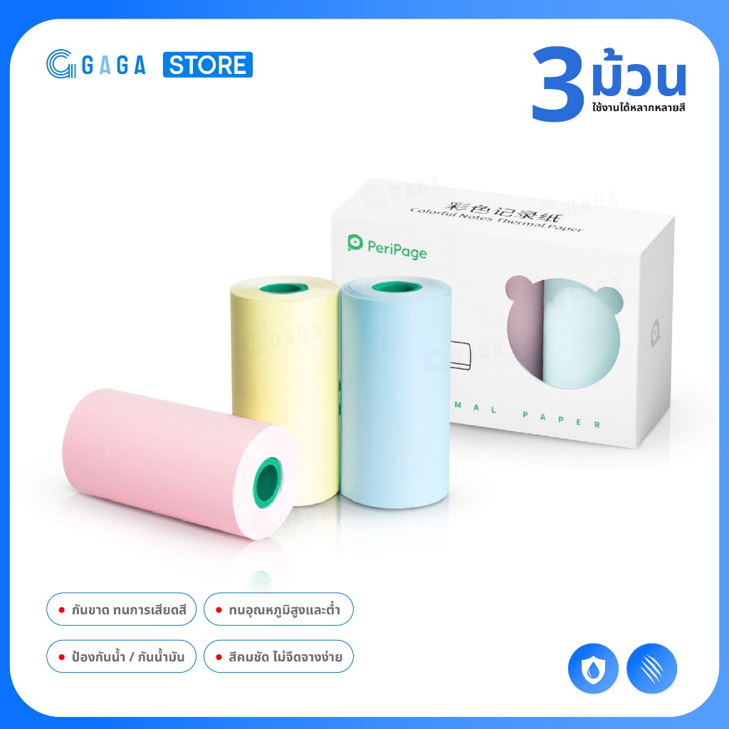 กระดาษความร้อน56×30 mm ปริ้นPeripage A6 เครื่องปริ้นหมี แพ็ค 3ม้วน 3สีฟ้า ชมพู เหลือง Colorful Notes