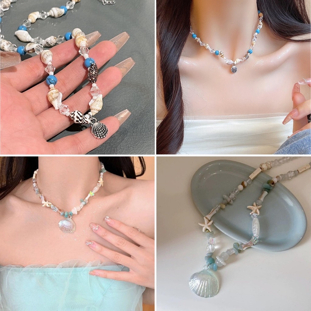 พร้อมส่ง!?? สร้อยคอแฟชั่น สร้อยคอลูกปัดหลากสี ห้อยจี้เปลือกหอย สร้อยคอโชคเกอร์ เกรดพรีเมียม เนื้องานเกาหลี วัสดุคุณภาพดี