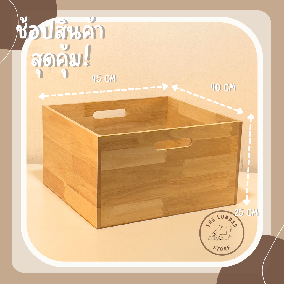 ลังไม้พารา แบบมีรูจับ ไม้พาราทั้งชิ้น สไตล์มินิมอล THE LUMBER PL1-404525-CC-ALL