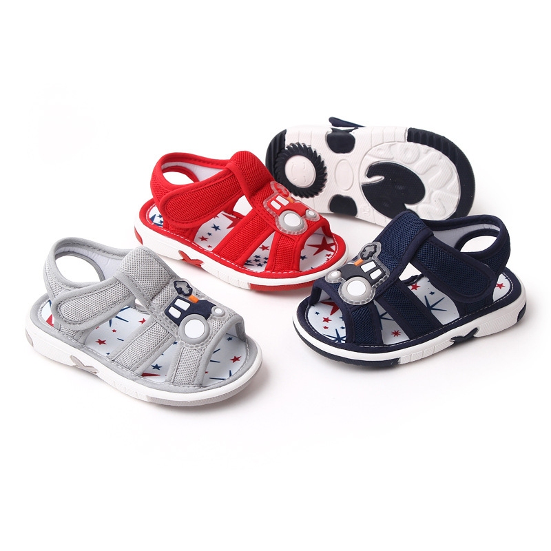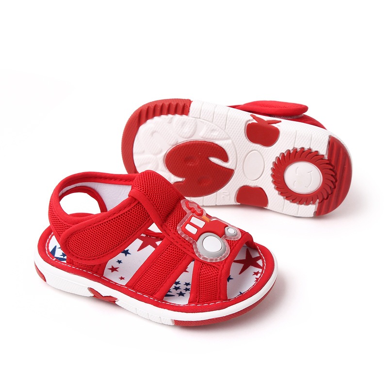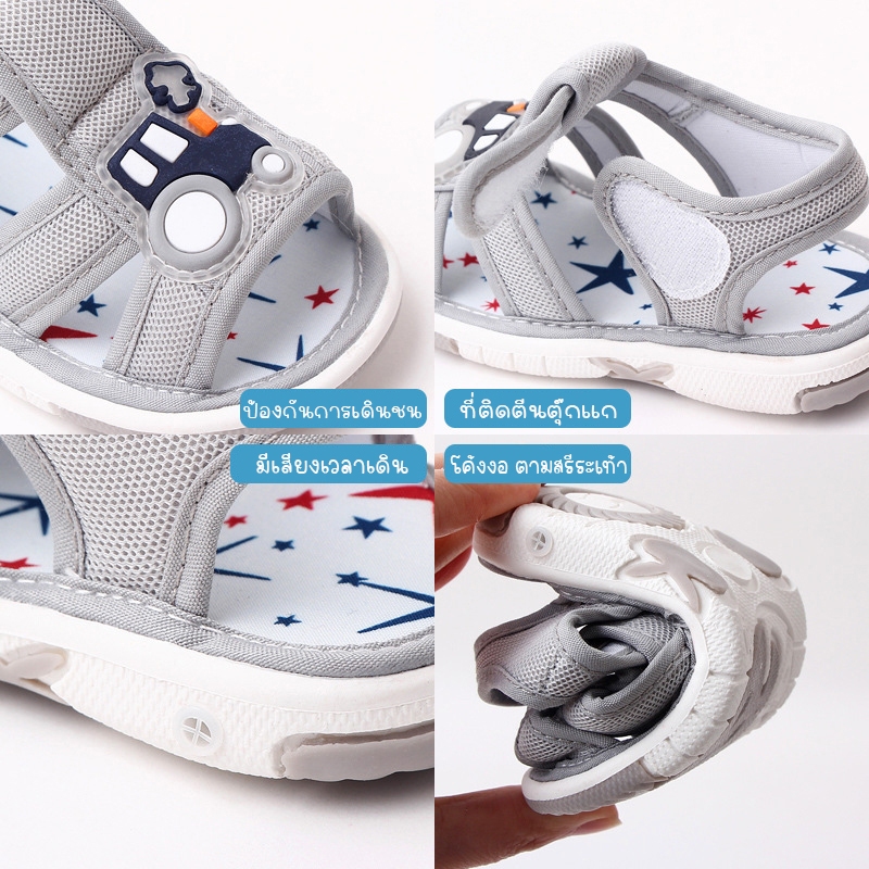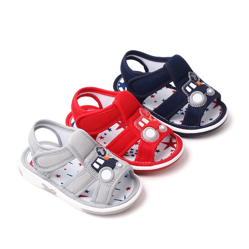 Babyonline(X341)2E4-5 (ส่งด่วน1วัน)รองเท้าแตะรัดส้นสำหรับเด็กหัดเดินลายรถแบบมีเสียง มีกันลื่น สบายเท้า