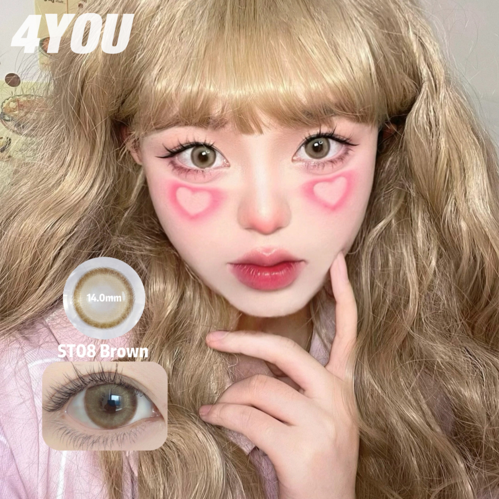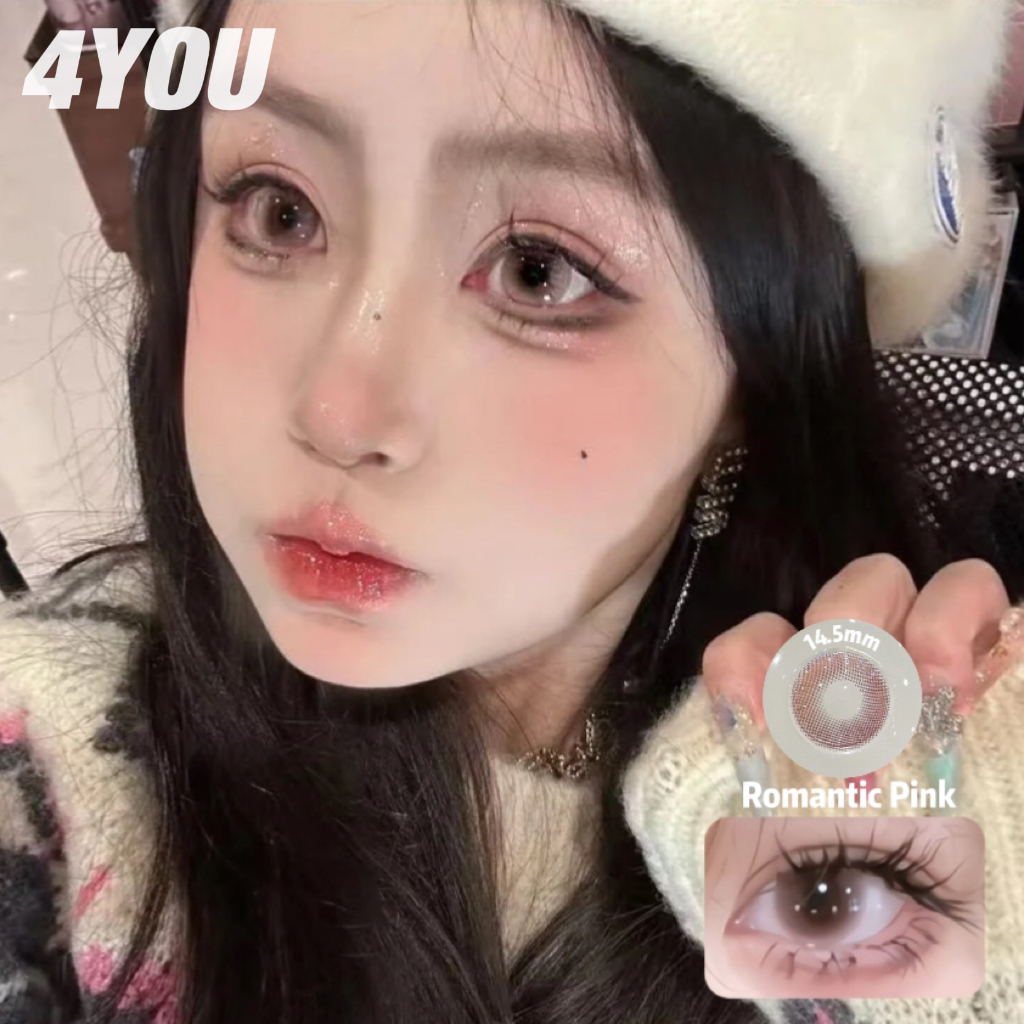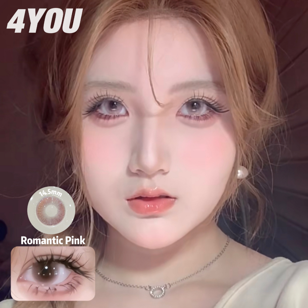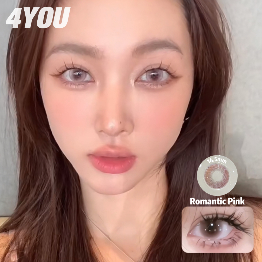 4youcod&gift2pcs สีชมพูเกรดคอนแทคเลนส์สีน้ําตาล(0.00~-8.00)ตาใหญ่ธรรมชาติ 14.0 มม.-14.5 มม.ใช้รายปี