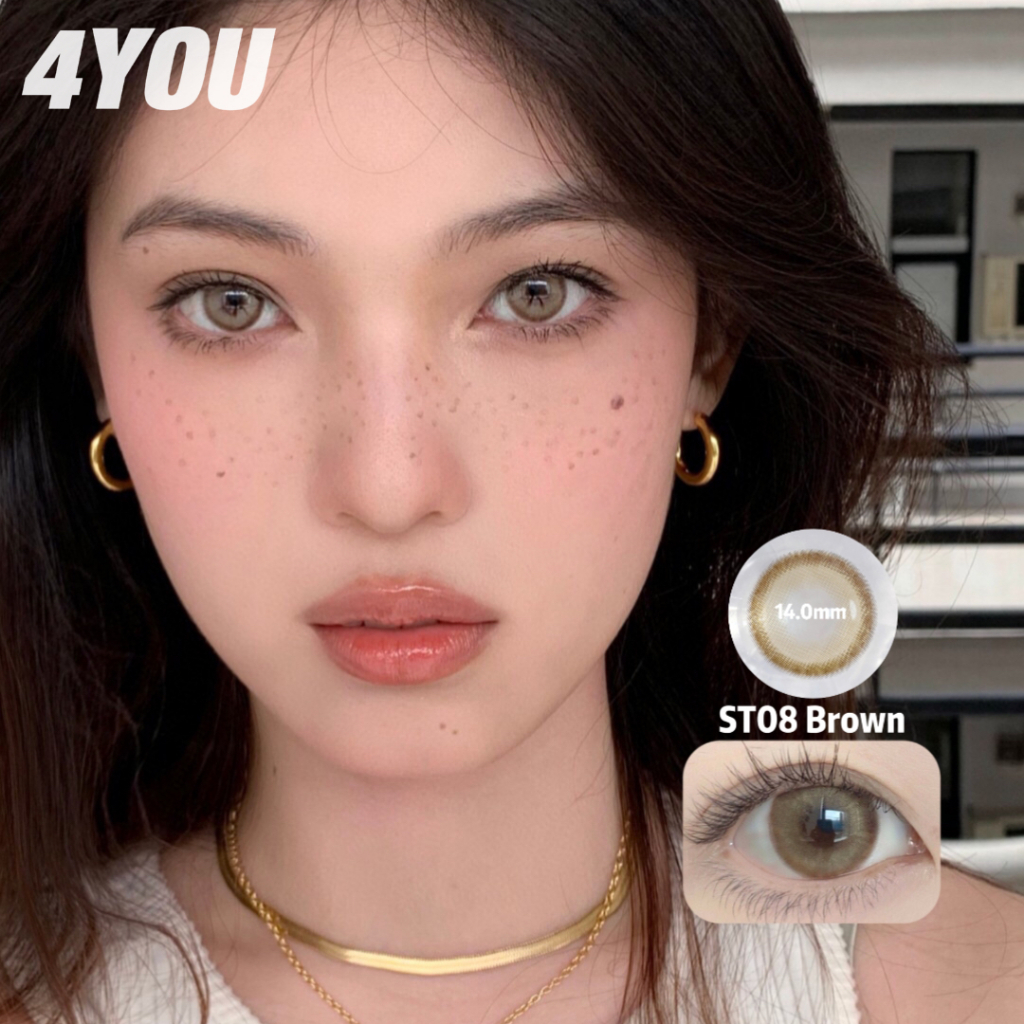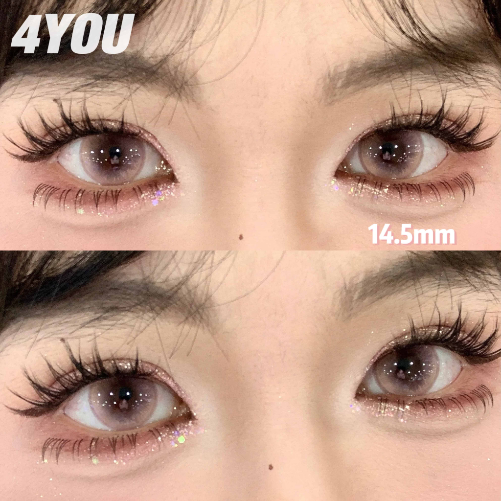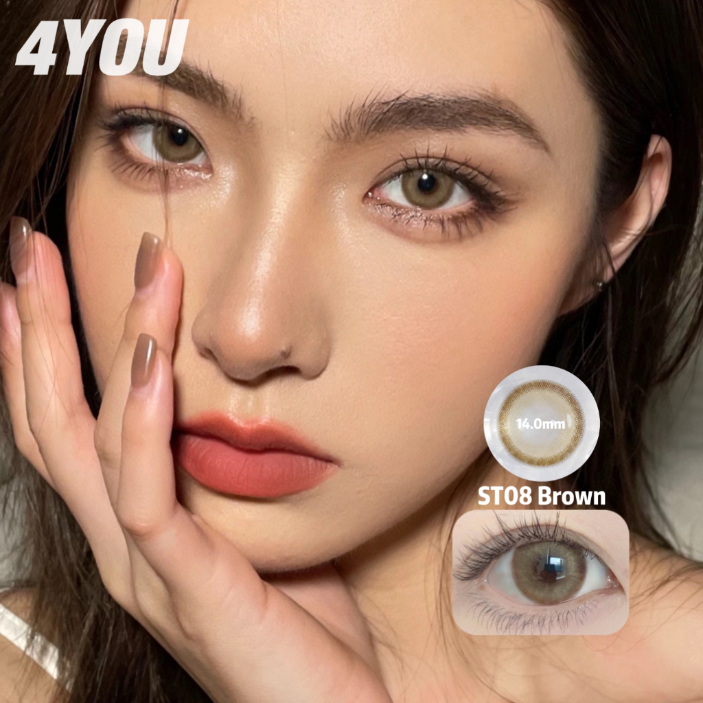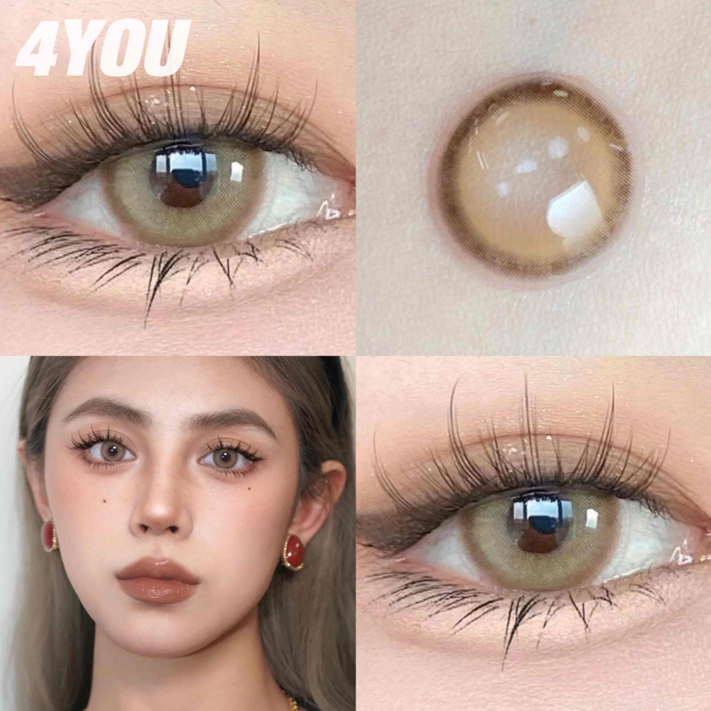 4youcod&gift2pcs สีชมพูเกรดคอนแทคเลนส์สีน้ําตาล(0.00~-8.00)ตาใหญ่ธรรมชาติ 14.0 มม.-14.5 มม.ใช้รายปี