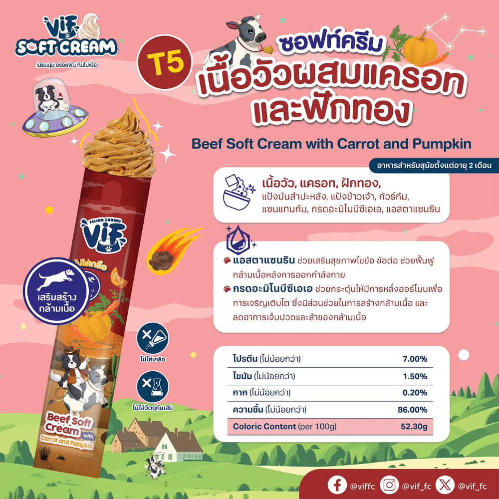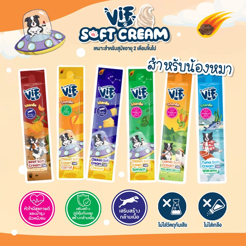 [Cheaper] [แพ็ค 5 ซอง] Vif Soft Cream ขนมหมาเลีย ซอฟท์ครีมหมาเลียเสริมวิตามิน ไม่เติมเกลือ ขนาด15กรัม x 5ซอง