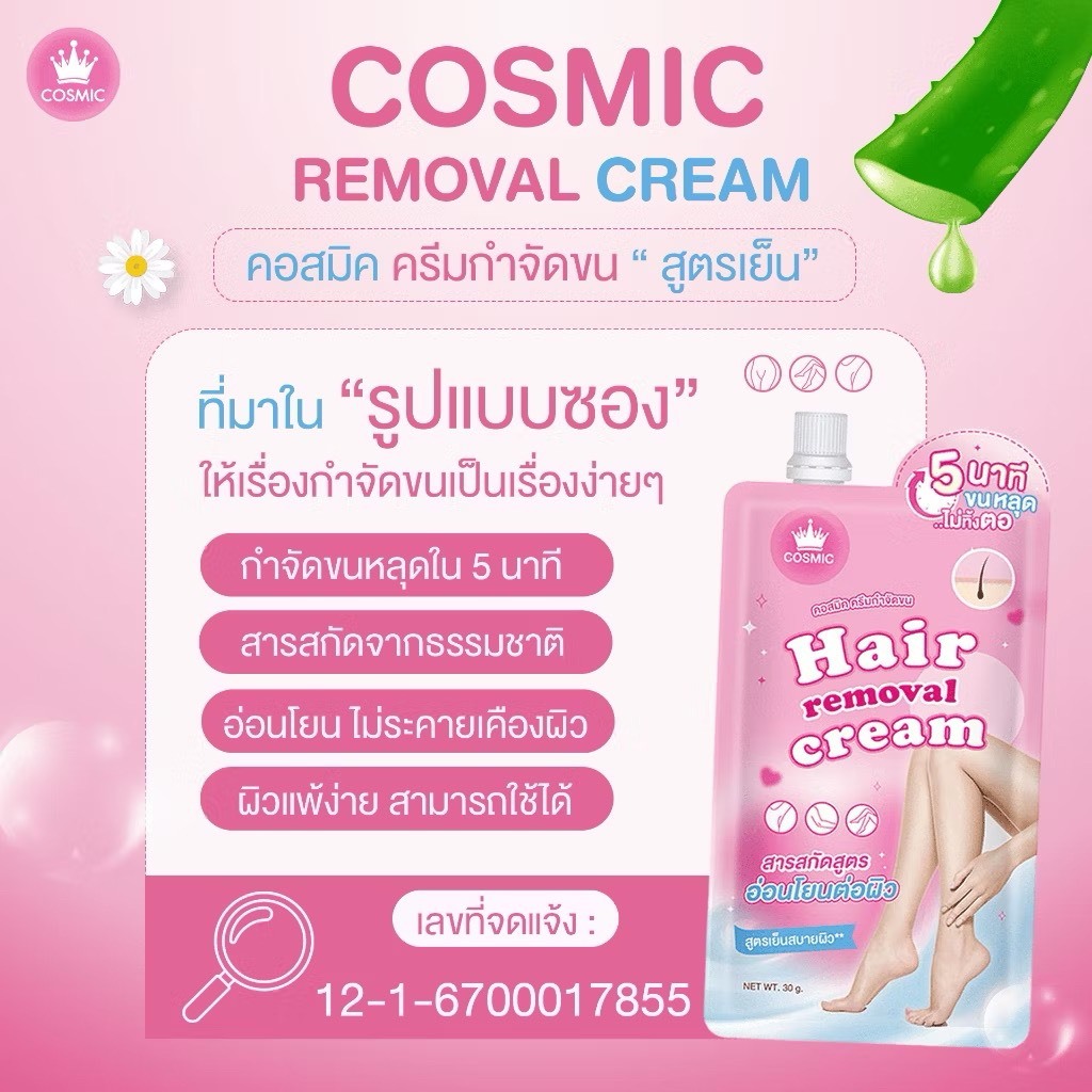 (ของแท้) Cosmic คอสมิค มูสกำจัดขน hair remover สูตรอ่อนโยน 1ซอง59บาทใหม่