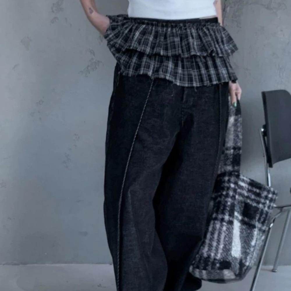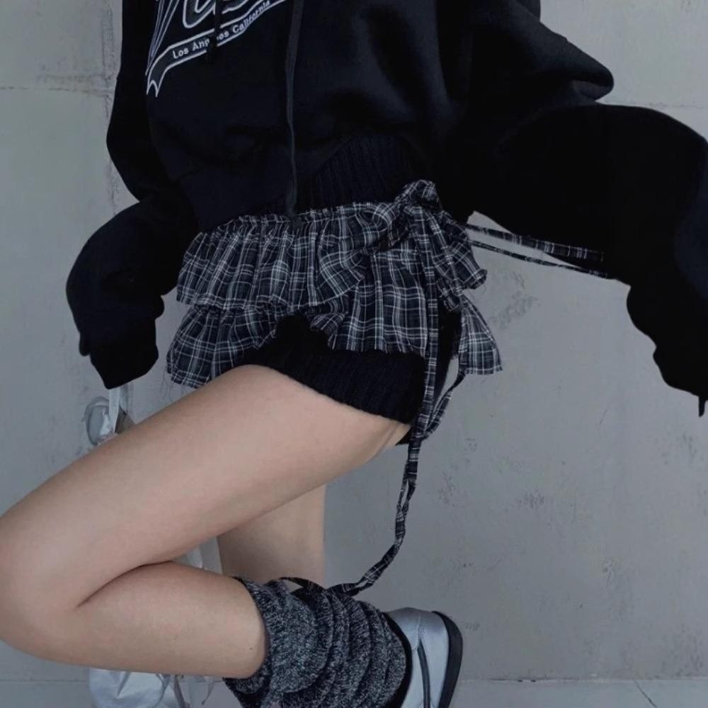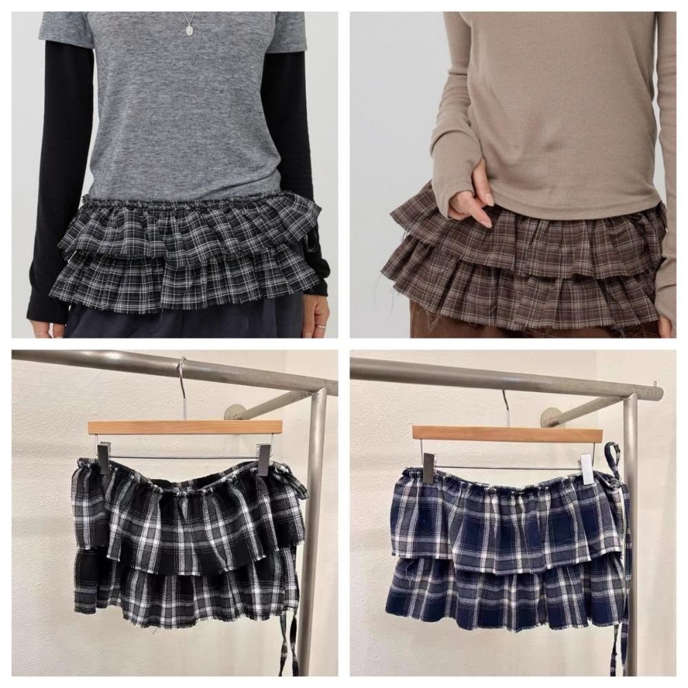 UNUF Layer ชุดกระโปรงลายสก๊อต, Y2K Hip-hop Lace Up Hip ผ้าพันคอ,ปรับหวานเสื้อ Extender สไตล์เกาหลี Ruffled Edge เข็มขัดแจ๊สชุดเต้นรําอุปกรณ์เสริม