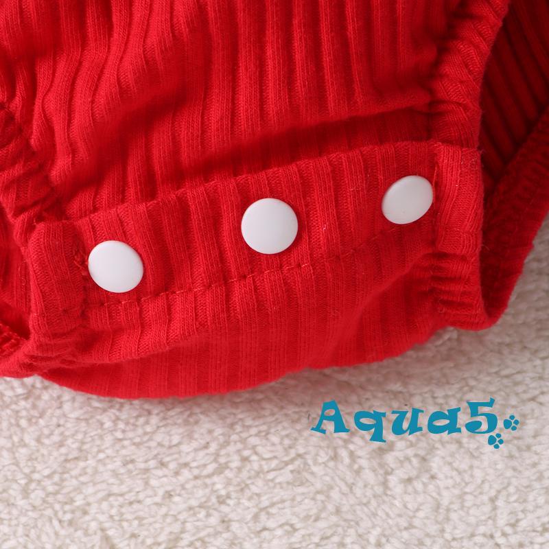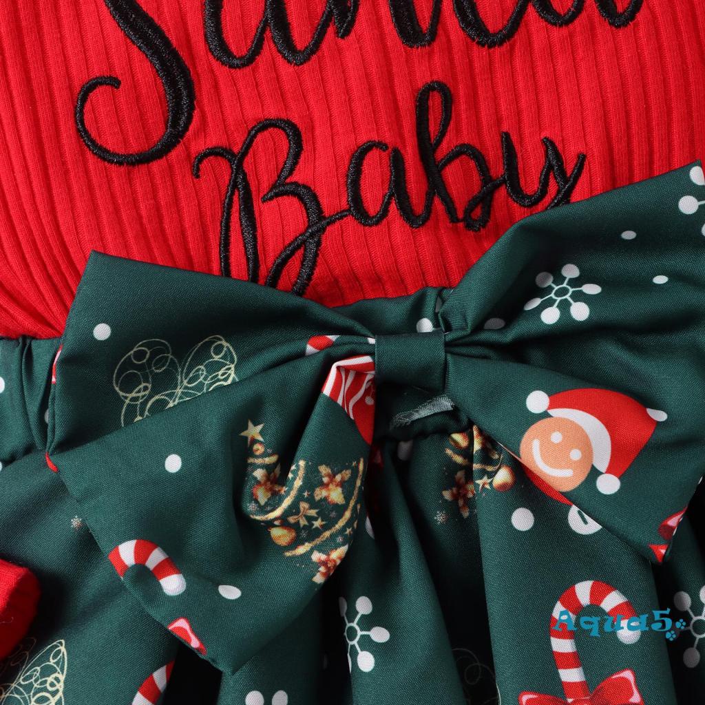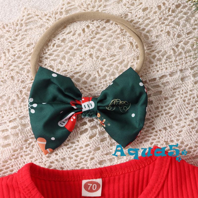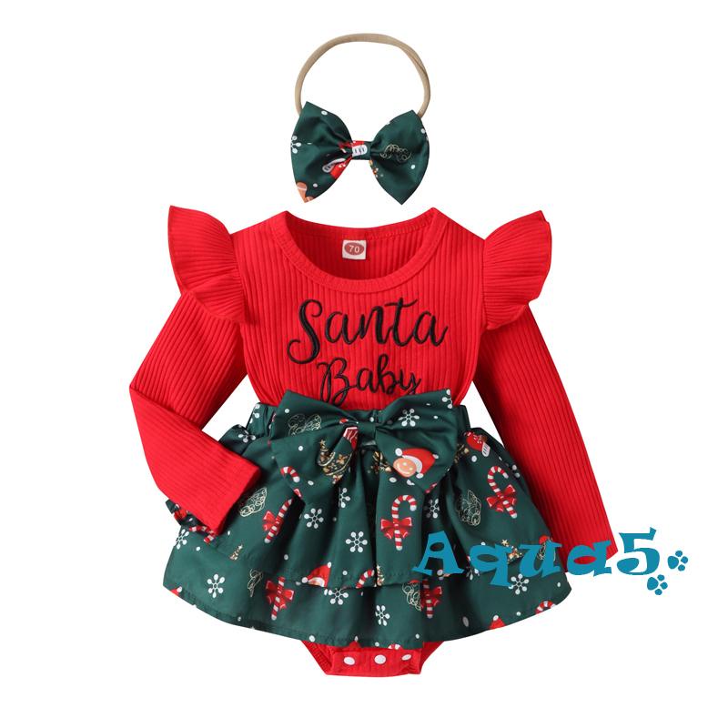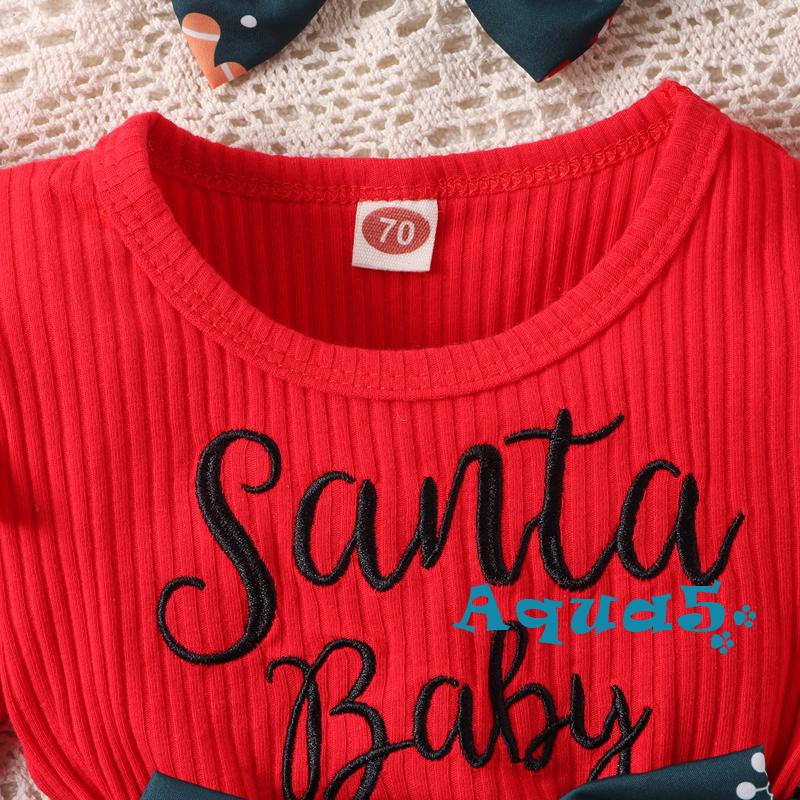 Aqq- ชุดรอมเปอร์ แขนยาว พิมพ์ลายตัวอักษร หมวกซานต้า คริสต์มาส สีแดง พร้อมที่คาดผม ประดับโบว์ สําหรับเด็กผู้หญิง