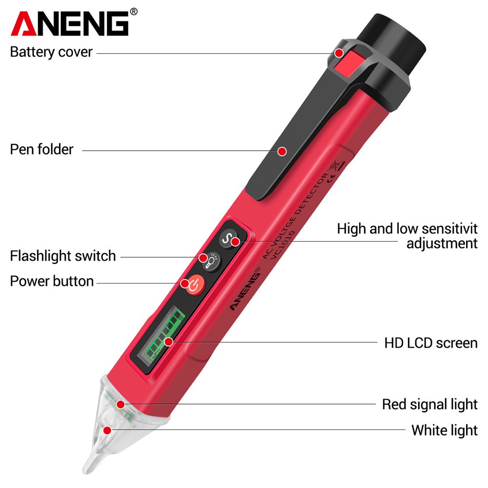 Aneng VC1010 เครื่องตรวจจับแรงดันไฟฟ้าดิจิทัล AC/DC 12-1000V อัจฉริยะ ไม่สัมผัส ปากกามิเตอร์ เซ็นเซอร์อิเล็กทรอนิกส์ ปากกาทดสอบ สายรัดกล่อง