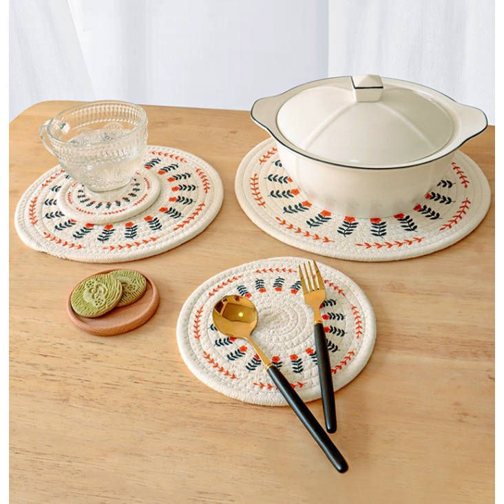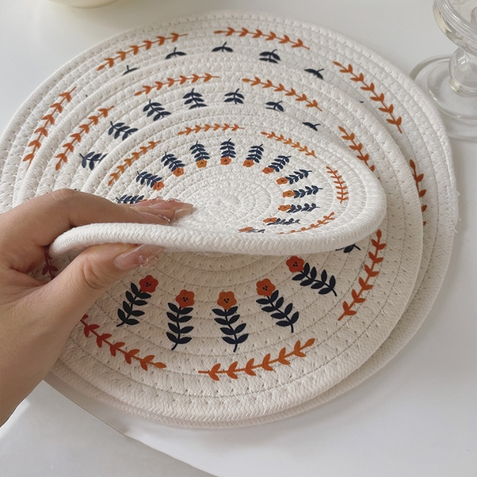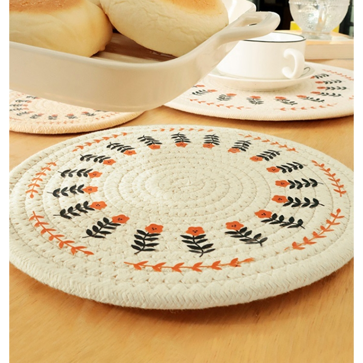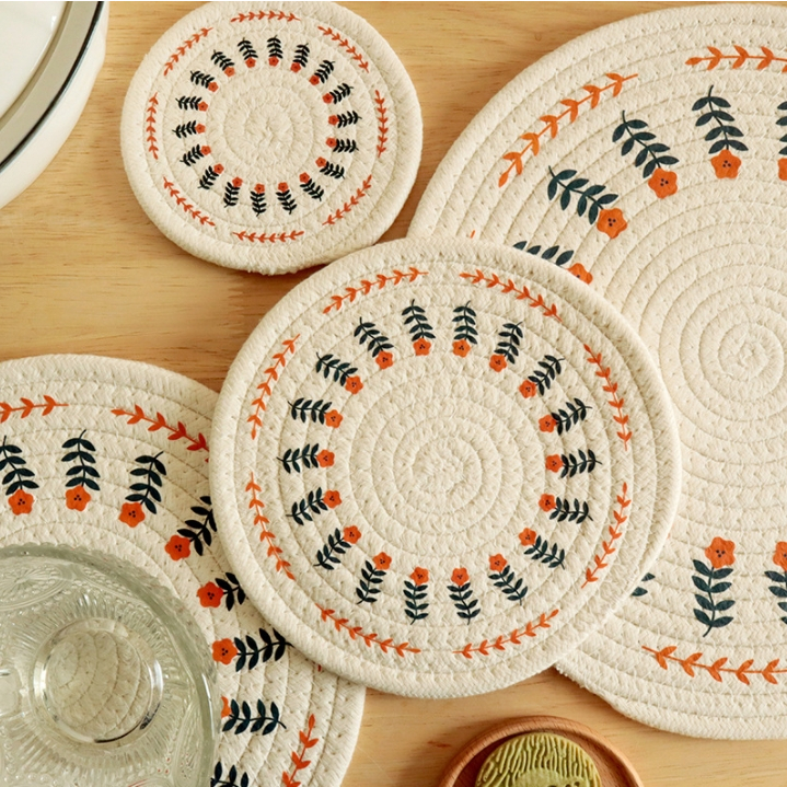 ผ้ารองจานทรงกลม ลายดอกไม้น่ารัก สไตล์นอร์ดิก สไตล์มินิมอล