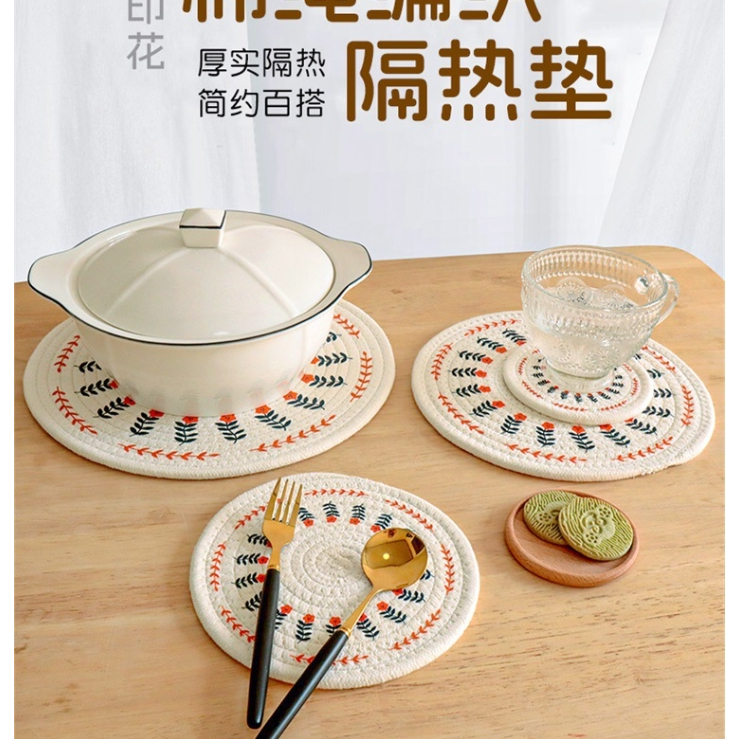 ผ้ารองจาน Placemat สไตล์นอร์ดิก มินิมอล ลายน่ารัก ทรงกลม ใช้รองแก้ว รองจาน ตกแต่งบ้าน