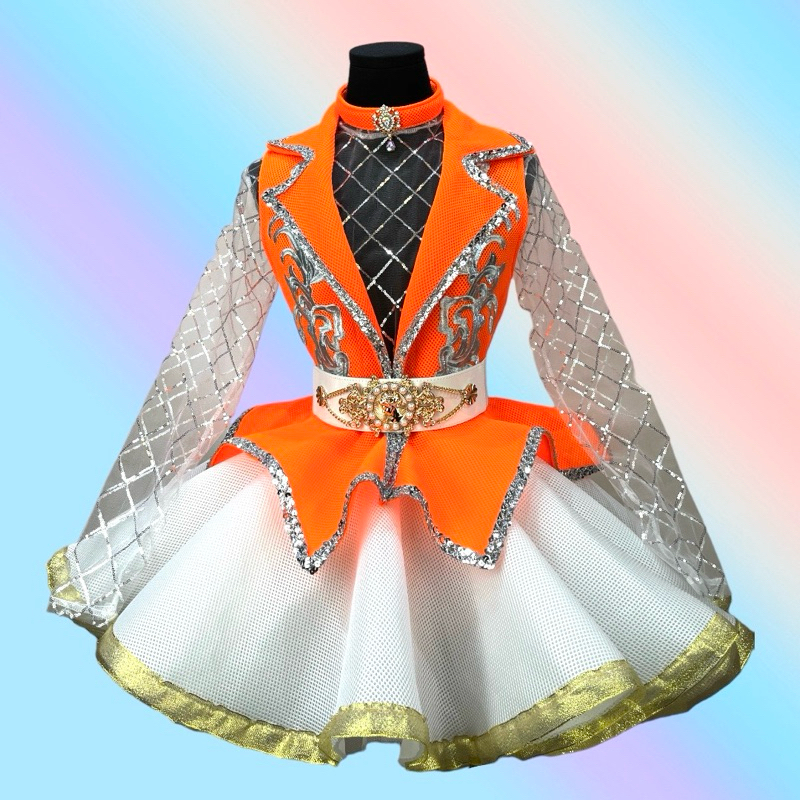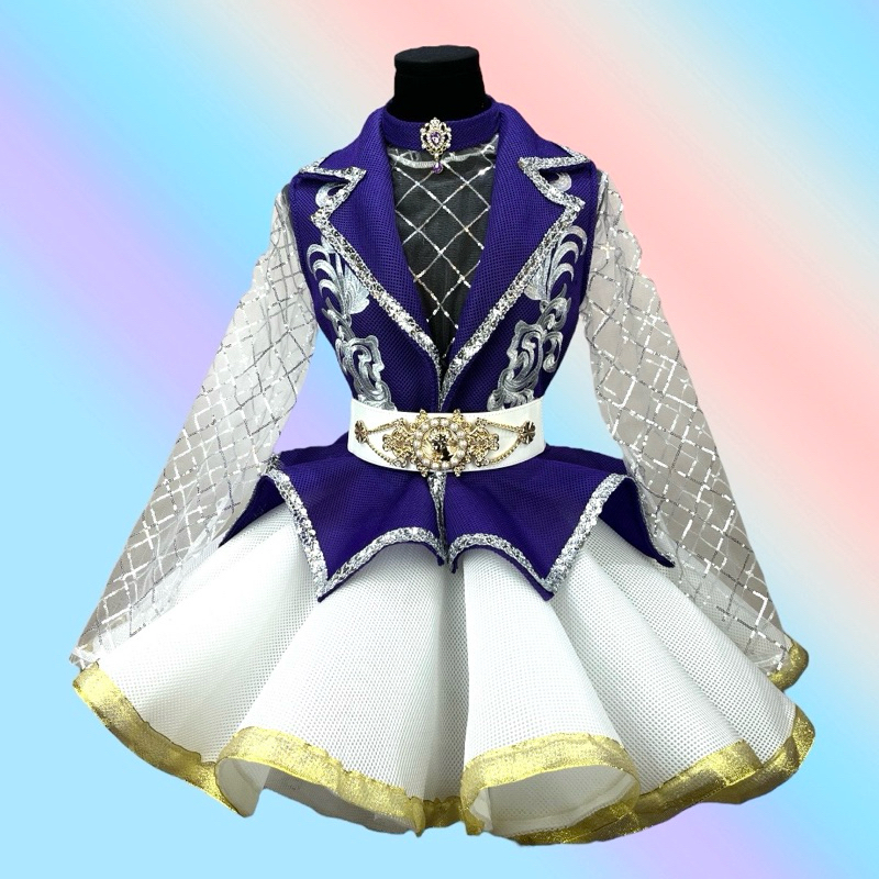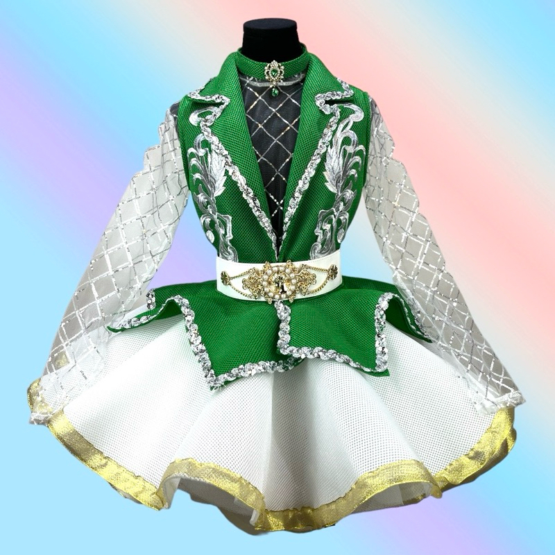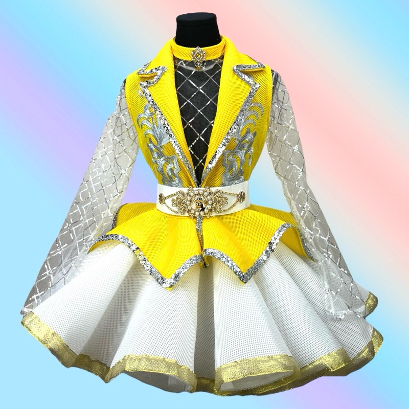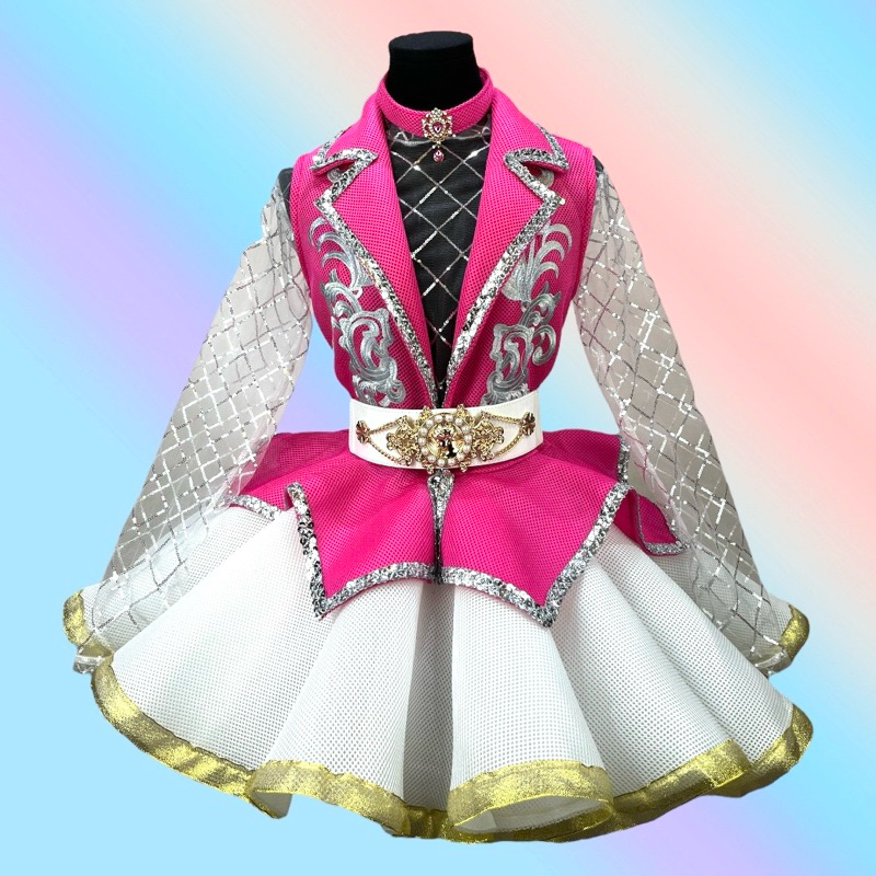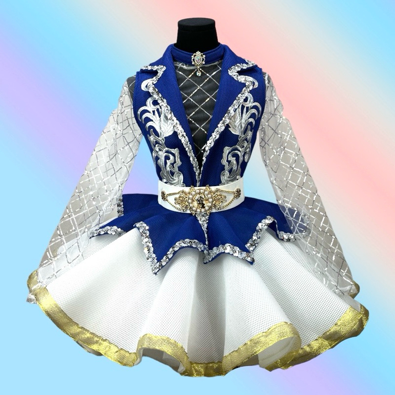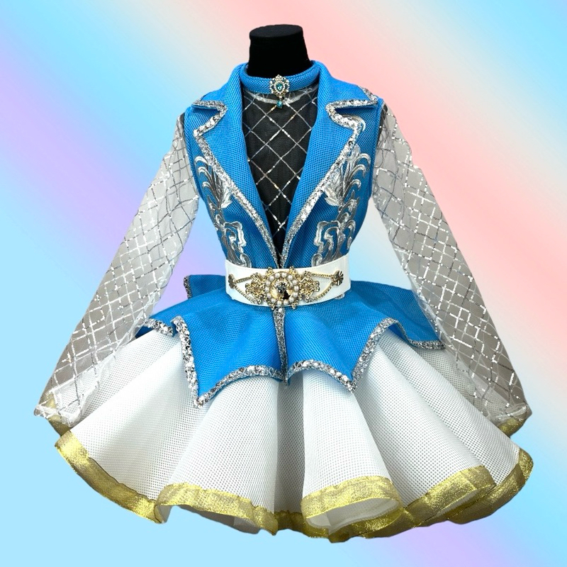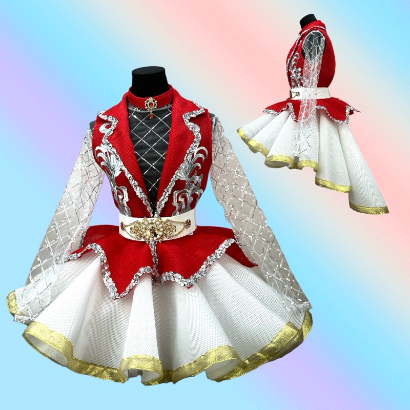 ชุดดรัมเมเยอร์ผู้ใหญ่ เสื้อปกเทเลอร์แซนวิชมี8สี กระโปรงหน้าสั้นหลังยาวสีขาว