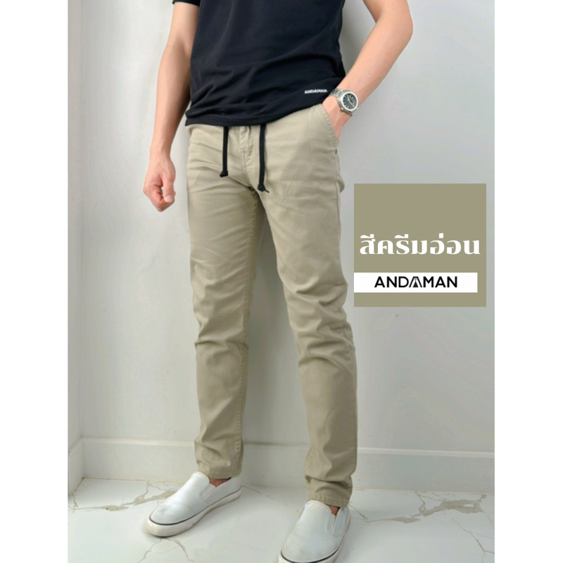 ••• เอวยืด มีเชือกผูก ขากระบอก เป้าซิป