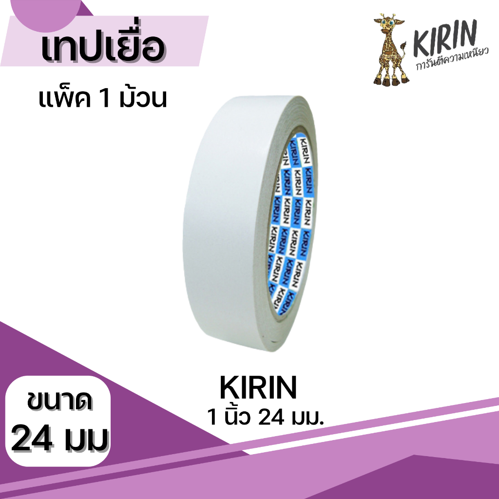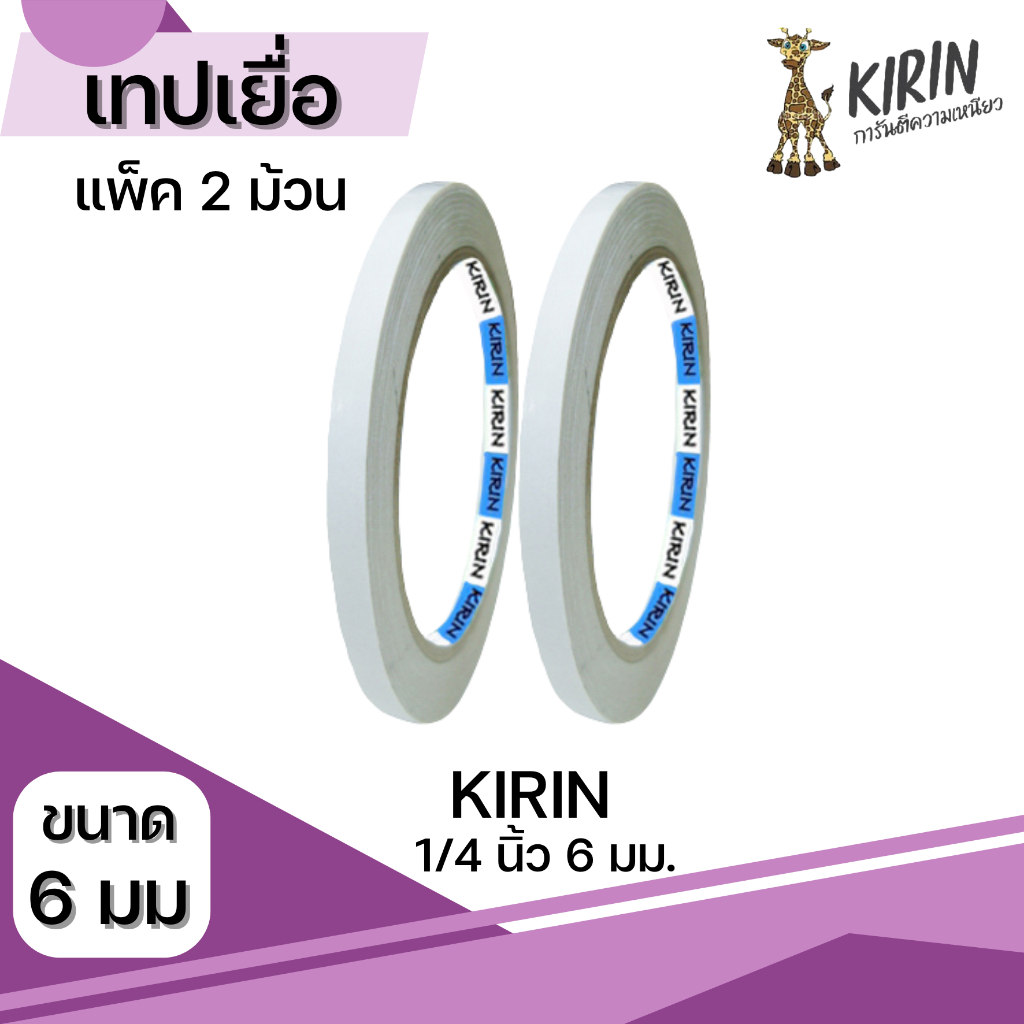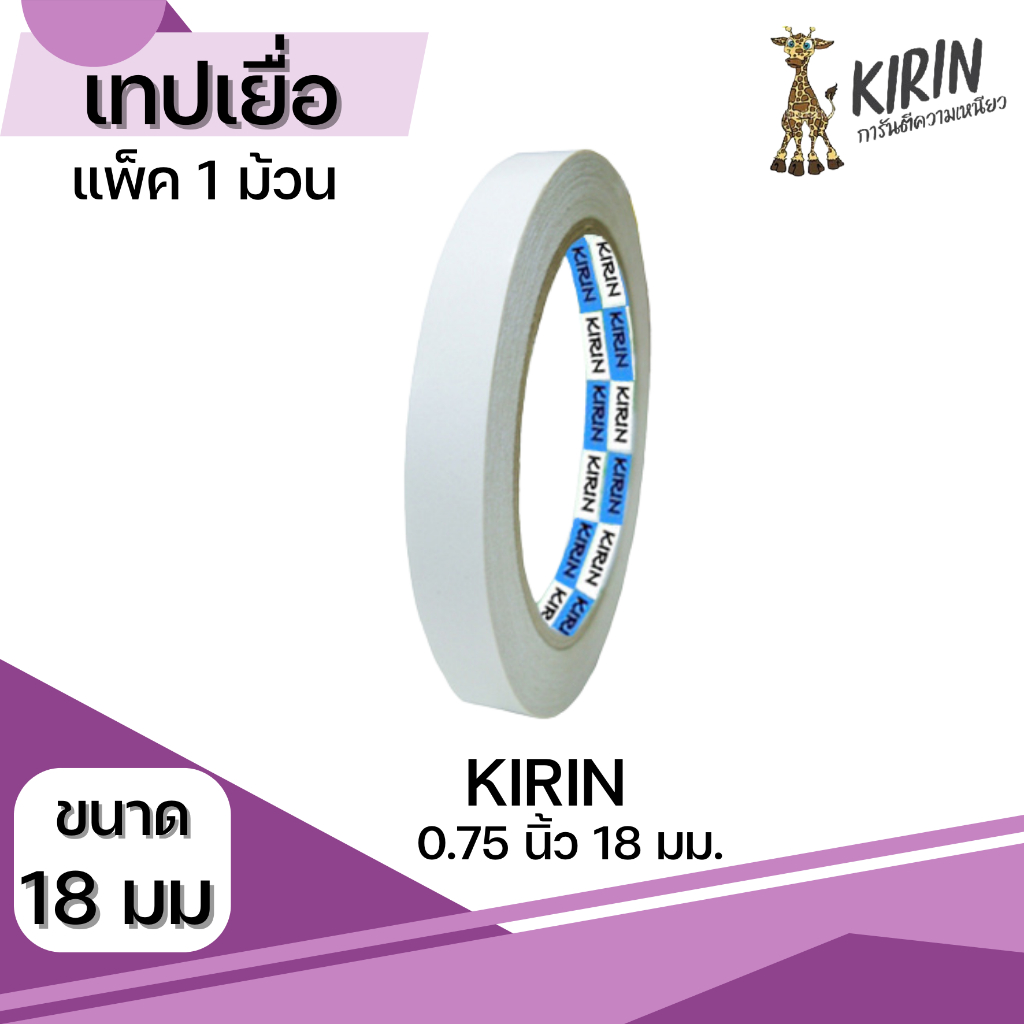 [มีส่งด่วน] เทปเยื่อ กาวสองหน้า Kirin ขนาด 6-48 mm (1/4 นิ้ว-2 นิ้ว ) ยาว 20 หลา แพ็ค 1,2 ม้วน