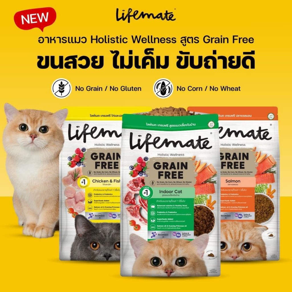 【1.2kg】Lifemate ไลฟ์เมท อาหารแมว อาหารเม็ดแมว เกรดพรีเมี่ยม Grain Free ไม่มี Grains และ Gluten