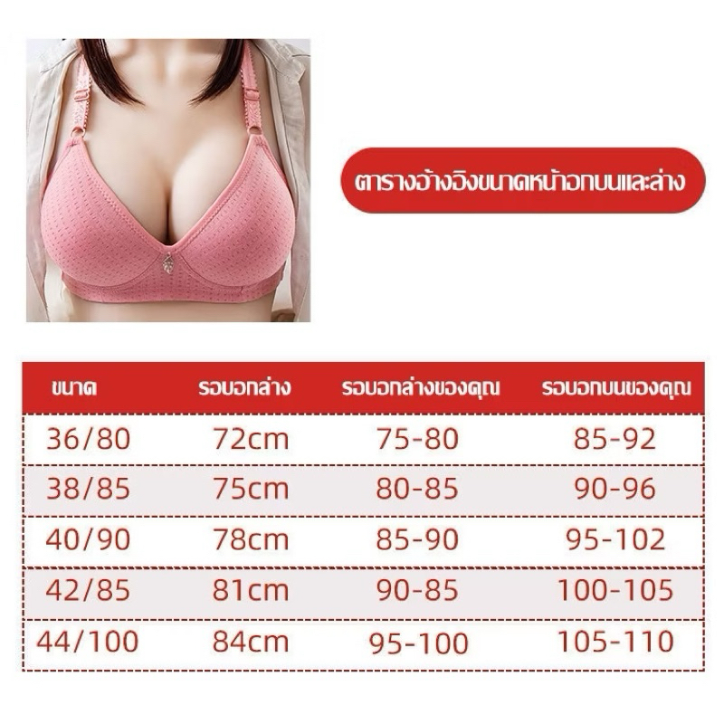 302 ชุดชั้นในขนาดบวก Size 36-46 BCดีไซน์ผ้าลายจุดระบายอากาศ เสื้อในไร้โครง เบาและบาง ดันทรง เสื้อใน
