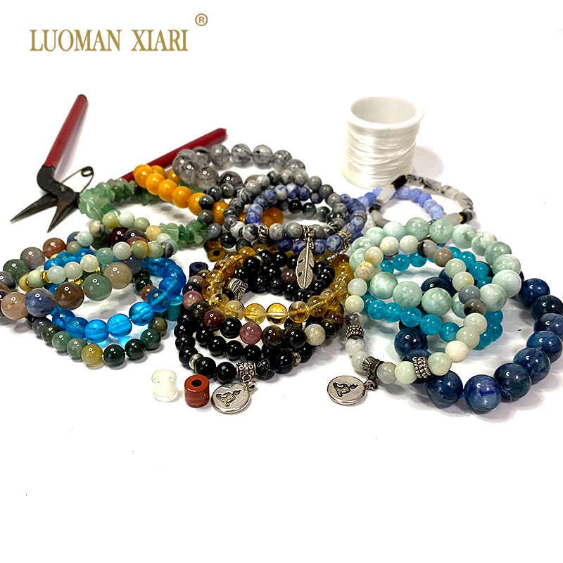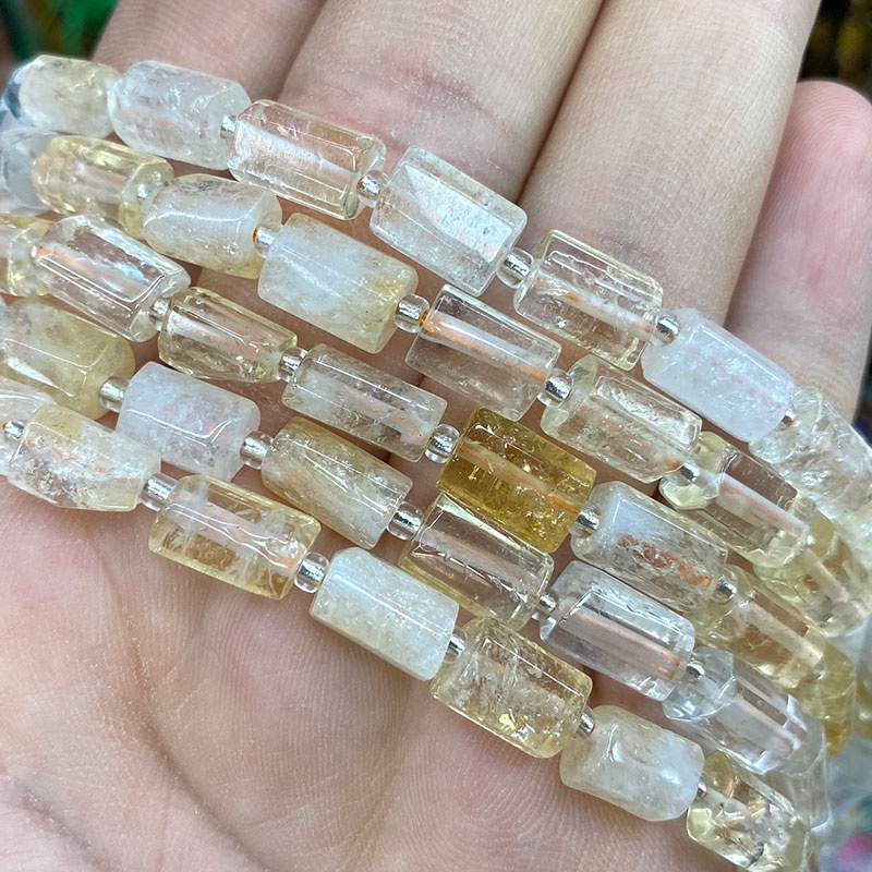 LUOMAN XIARI Spot Factory 100% ธรรมชาติ Lapis Lazuli หยก Citrine Aquamarine Emerald กระบอกอัญมณีหินลูกปัดสําหรับเครื่องประดับทํา DIY สร้อยคอสร้อยข้อมือ 19 ซม.