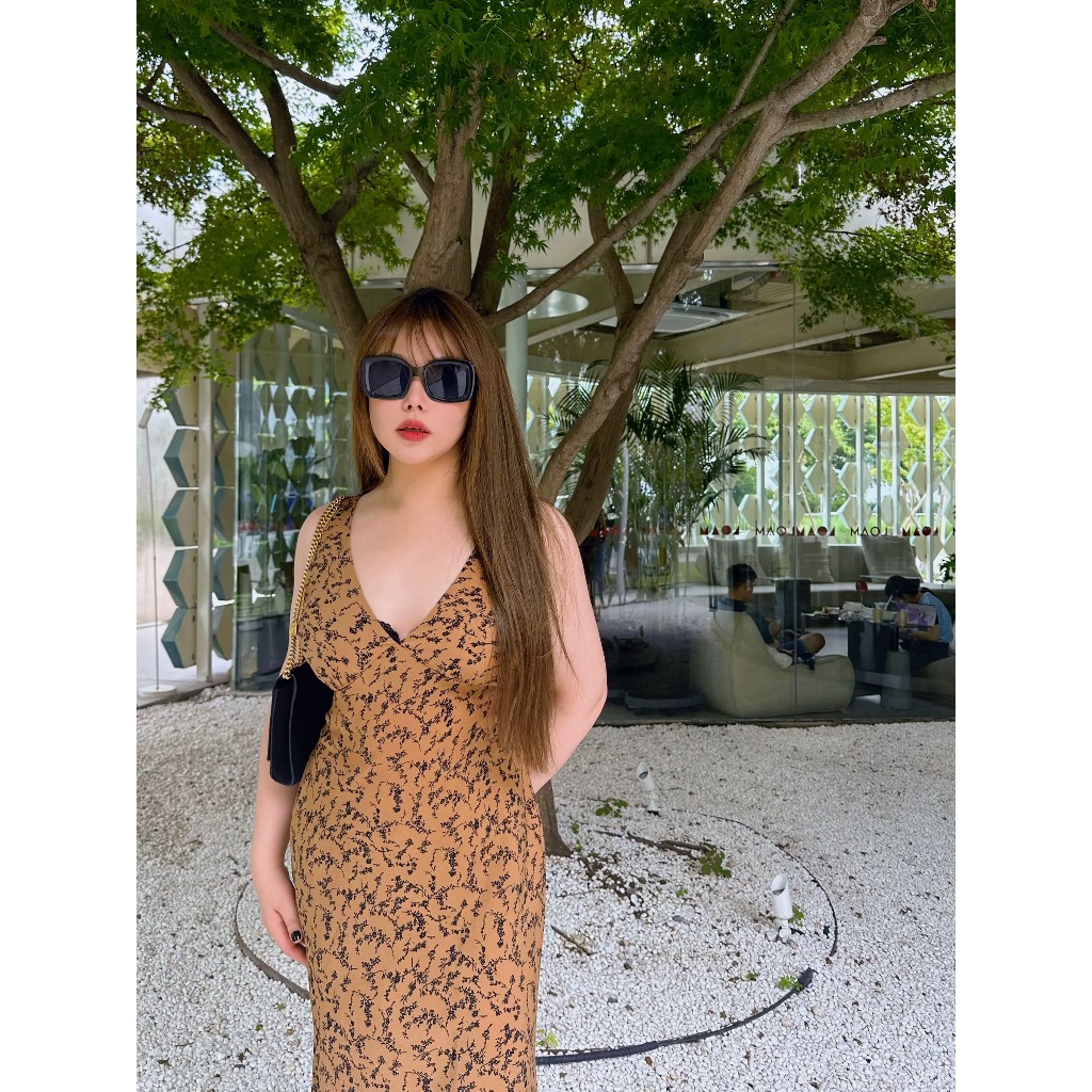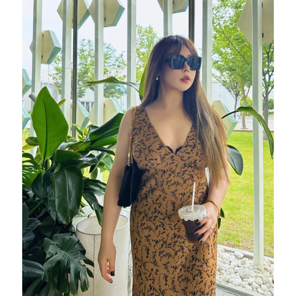 CiCi Plus+(3186)เดรสสายเดียวแบบยาว ดีเทลแต่งวีตรงอก แซ่บเบอร์แร๊งม๊ากกกเหมาะกับสาวพลัสไซส์