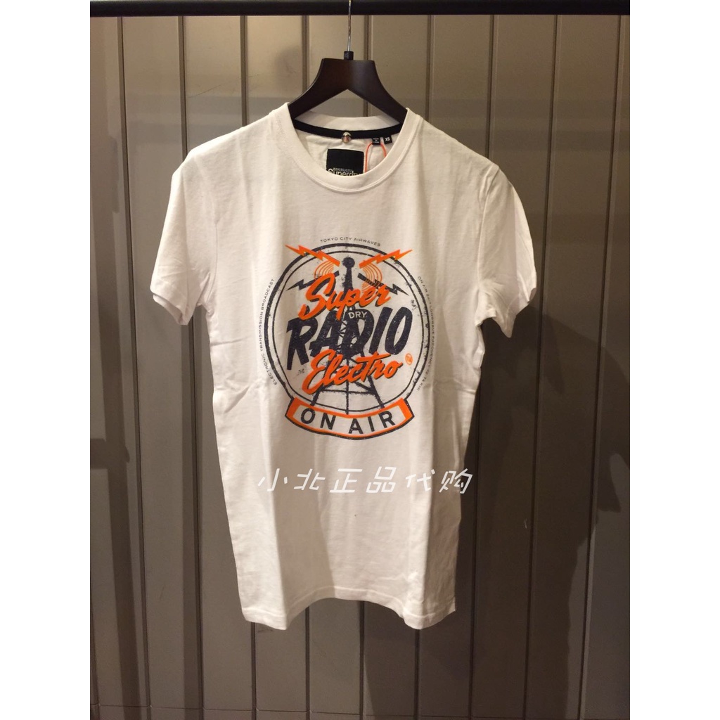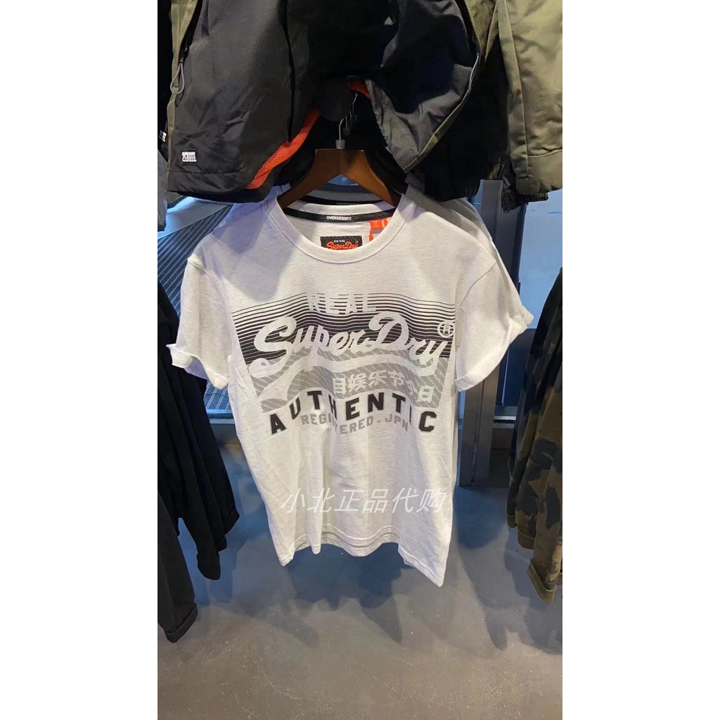 Superdry เสื้อยืดแขนสั้นผู้ชาย Superdry ผ้าฝ้ายแท้คอกลมสีขาวกีฬาเยาวชนเรียบง่ายแขนสั้น