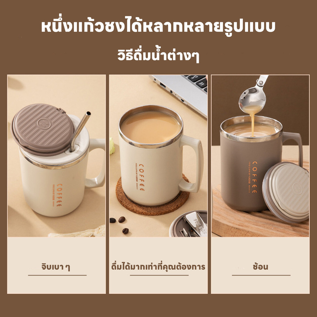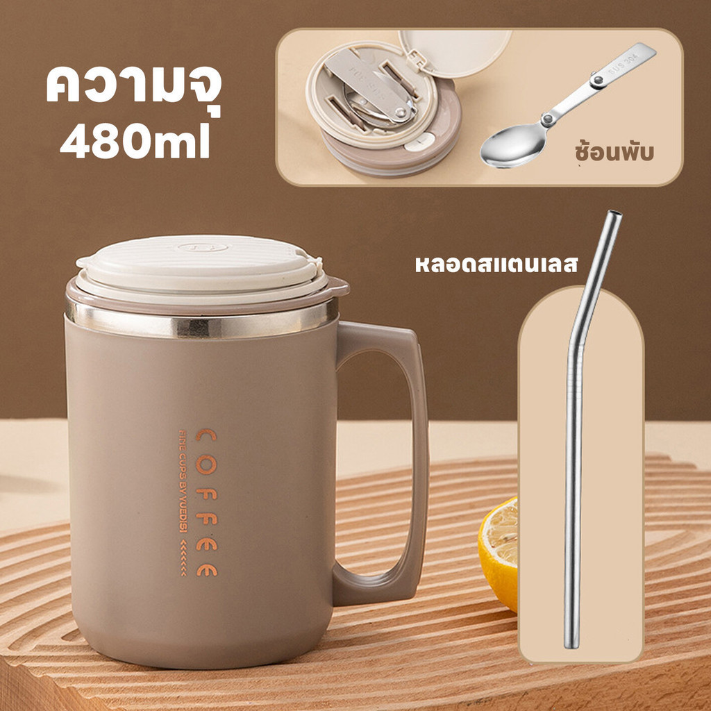 แก้วกาแฟเก็บความเย็นความร้อน แก้วเยติ มีหูจับ 480ML แก้วน้ำ แถมหลอดและช้อน คุณภาพดี เก็บความเย็นได้ยาวนาน24ชม. มีฝาปิด