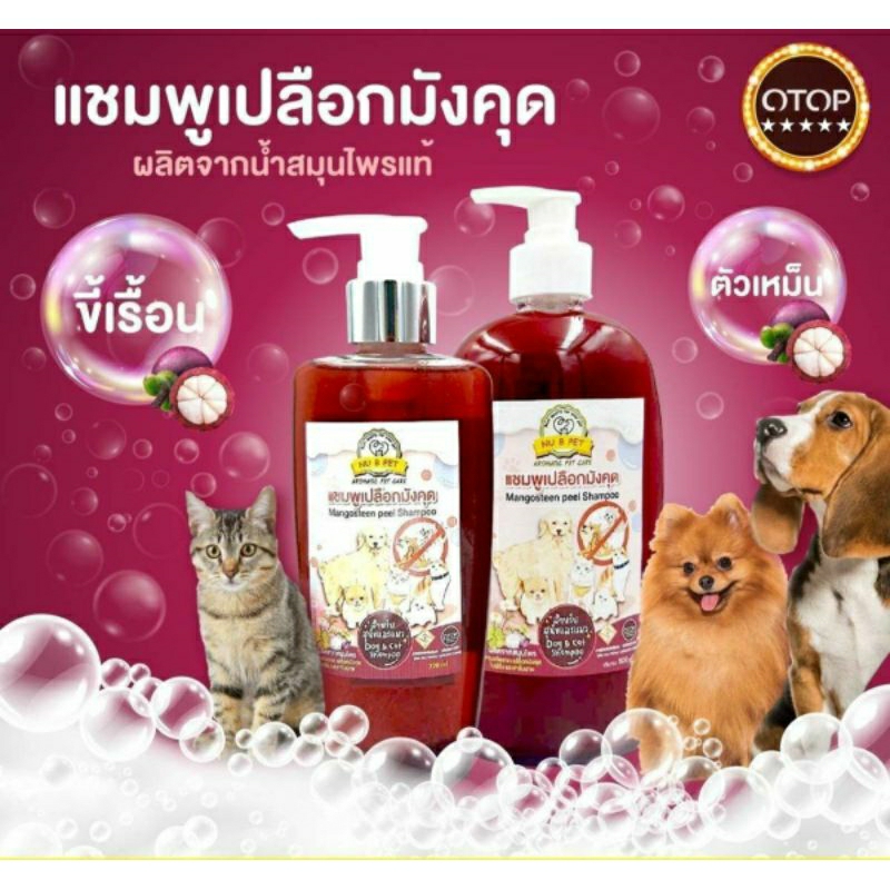 แชมพูเปลือกมังคุดสำกรับสุนัขและแมว สูตรผิวหนัง เชึ้อราขี้เรื้อน ผื่นคันแดง สินค้าOTOP 4ดาว