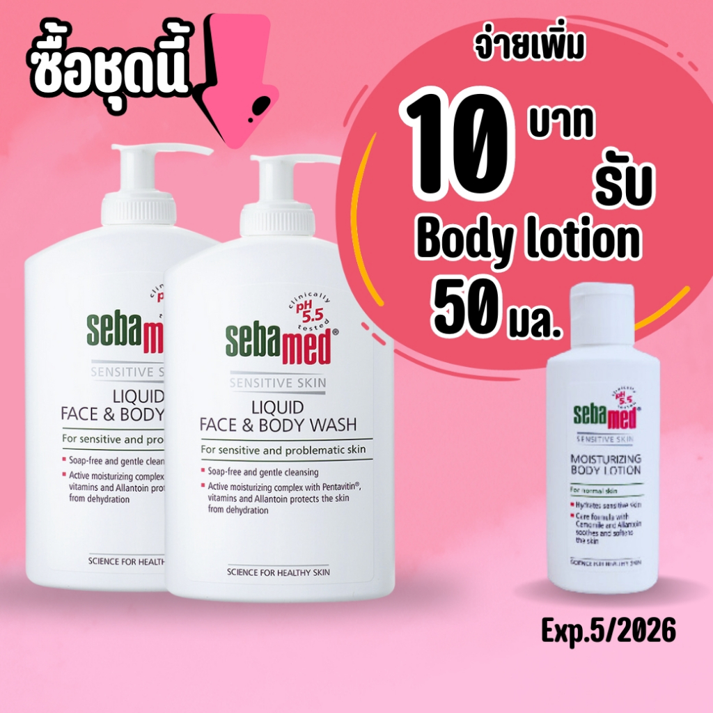 Exp.7/27 SEBAMED LIQUID FACE AND BODY WASH (1000ML)ทำความสะอาดผิว แพ็กคู่ 3577