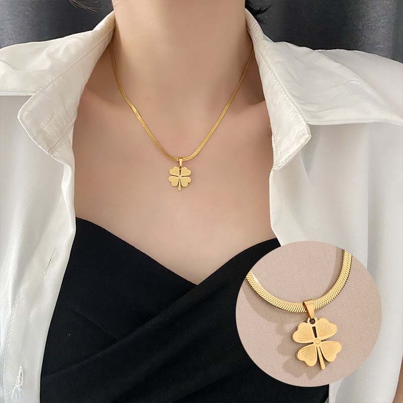 สร้อยคอเหล็กไทเทเนียมที่สวยหรูสําหรับผู้หญิงป้องกันการซีดจาง 18เค สร้อยคอชุบทองแฟชั่นสร้อยคอสั้นอุปกรณ์เสริมของขวัญ