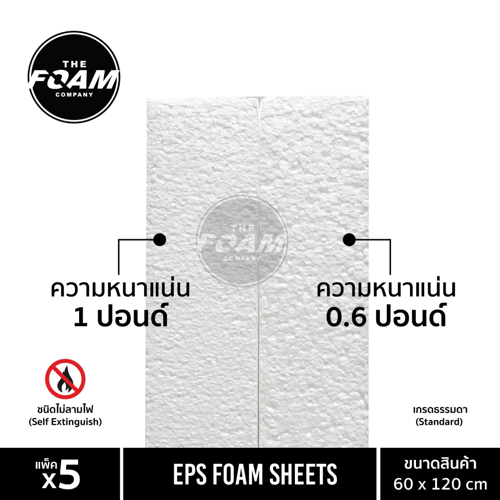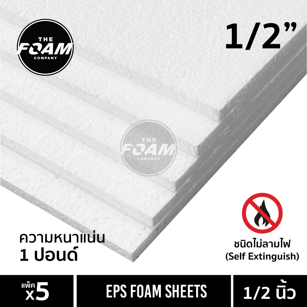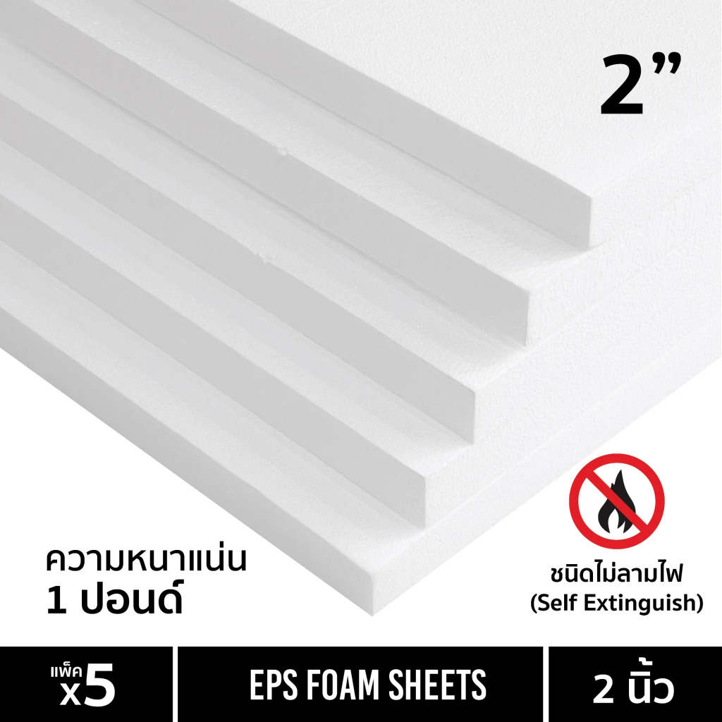 EPS FOAM โฟมแผ่น ความหนา 1/2 นิ้ว, 3/4 นิ้ว, 1 นิ้ว, 1.5 นิ้ว , 2 นิ้ว หนาแน่น 1 ปอนด์ แพ็ค5แผ่น