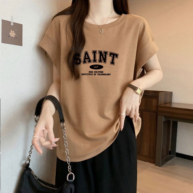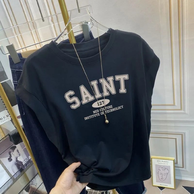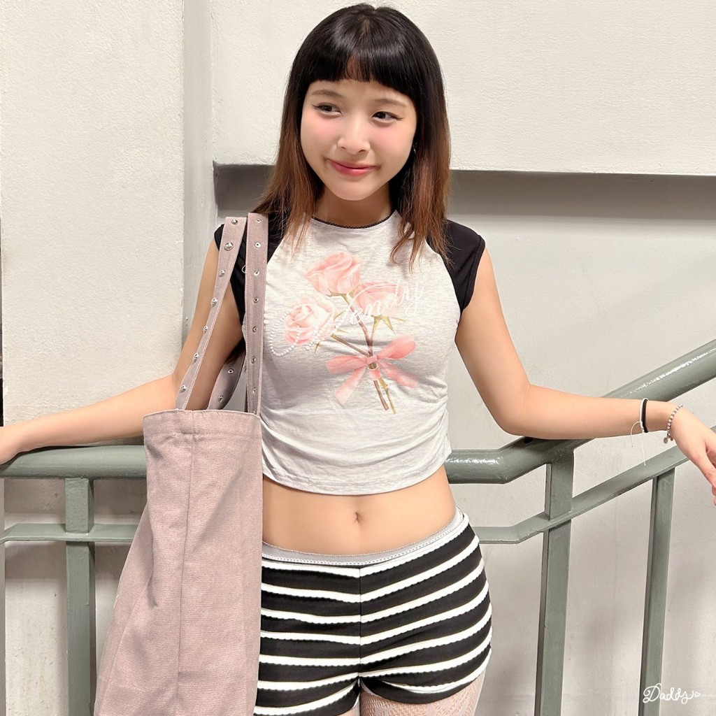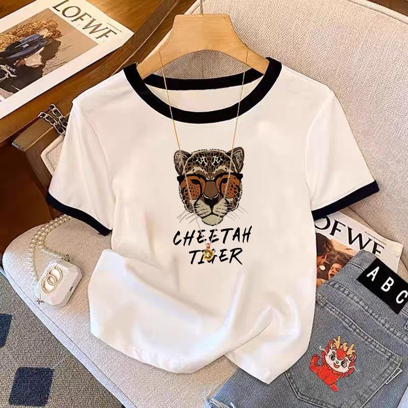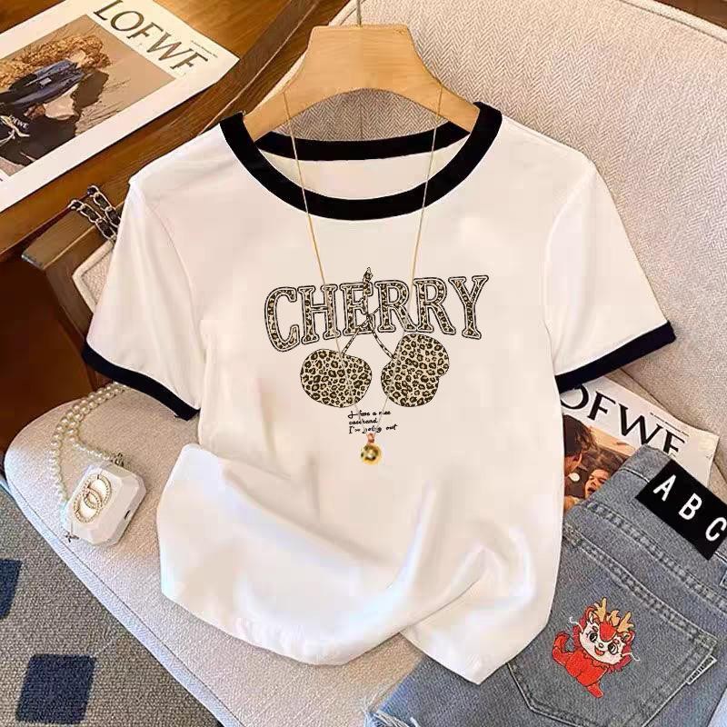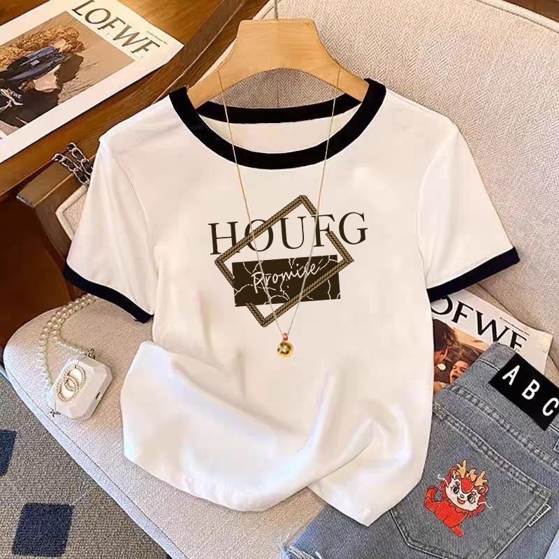 Meiyangtwo.th ฤดูร้อนแฟชั่นไล่โทนสีลายคอกลมแขนสั้นลําลองหลวมถักเสื้อยืดใหม่