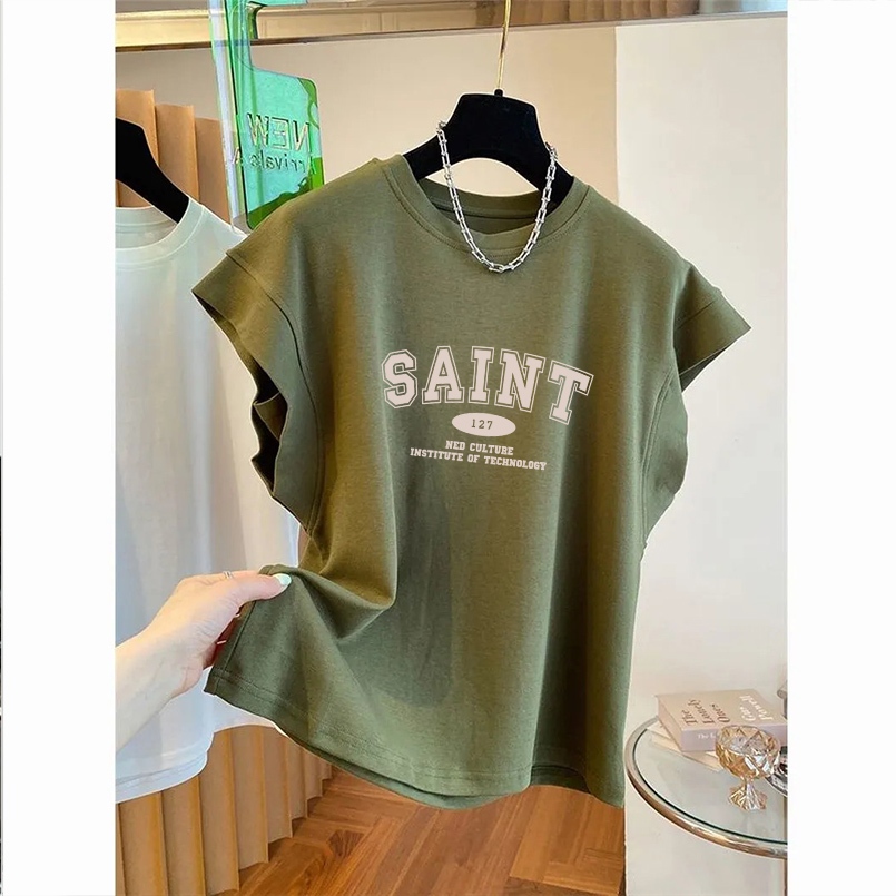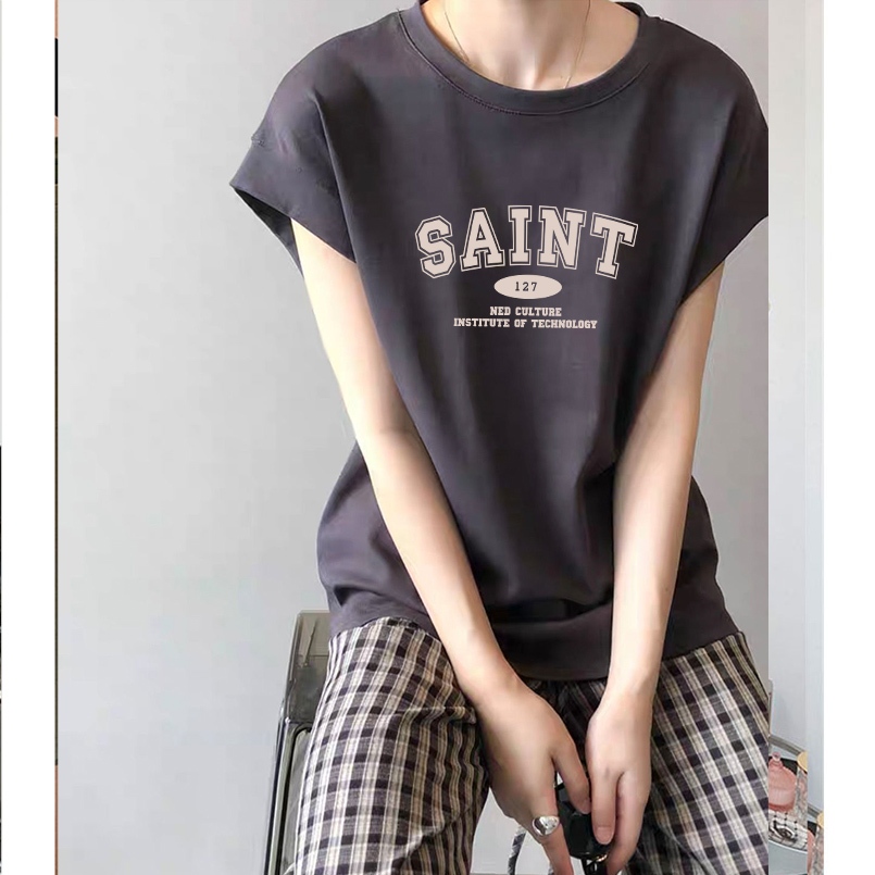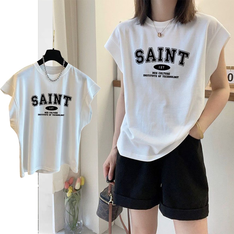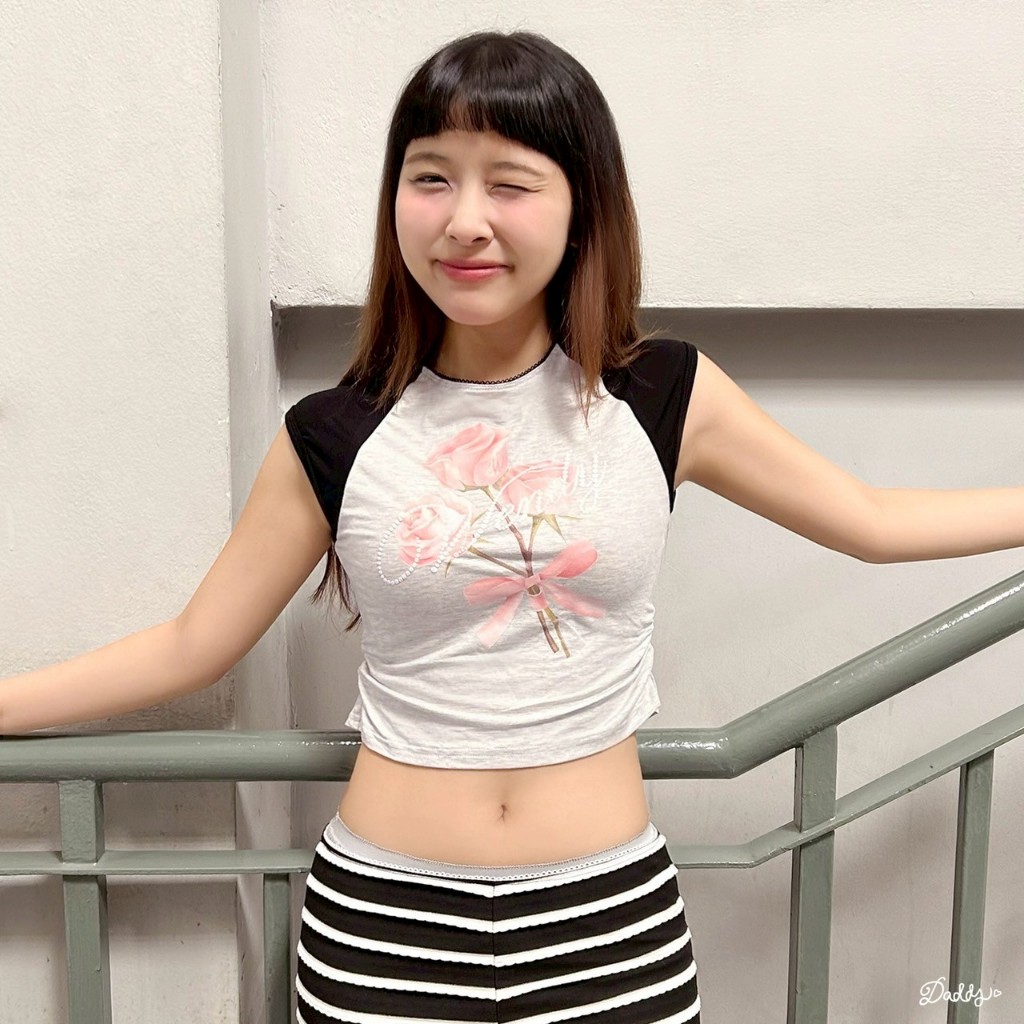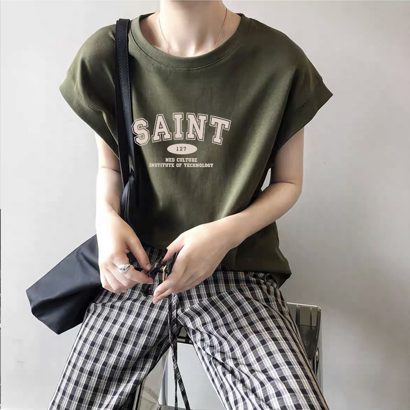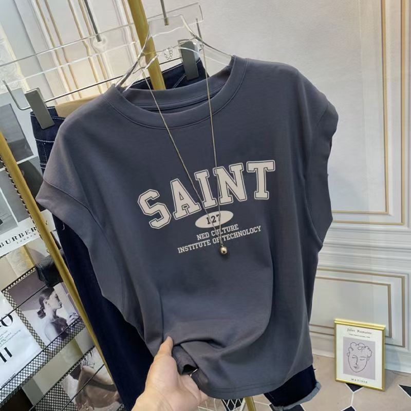 Meiyangtwo.th ฤดูร้อนแฟชั่นไล่โทนสีลายคอกลมแขนสั้นลําลองหลวมถักเสื้อยืดใหม่