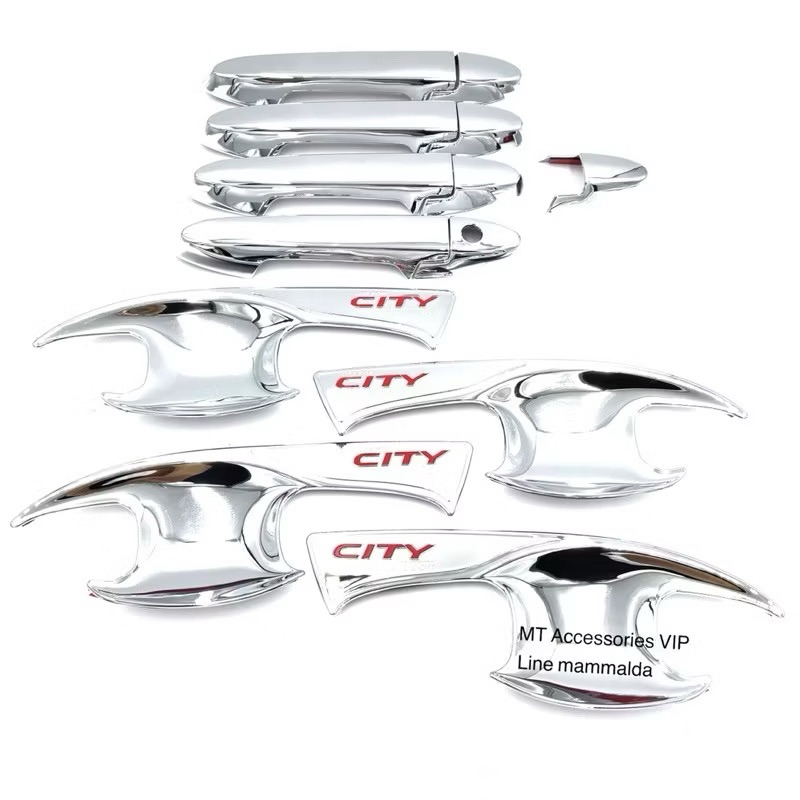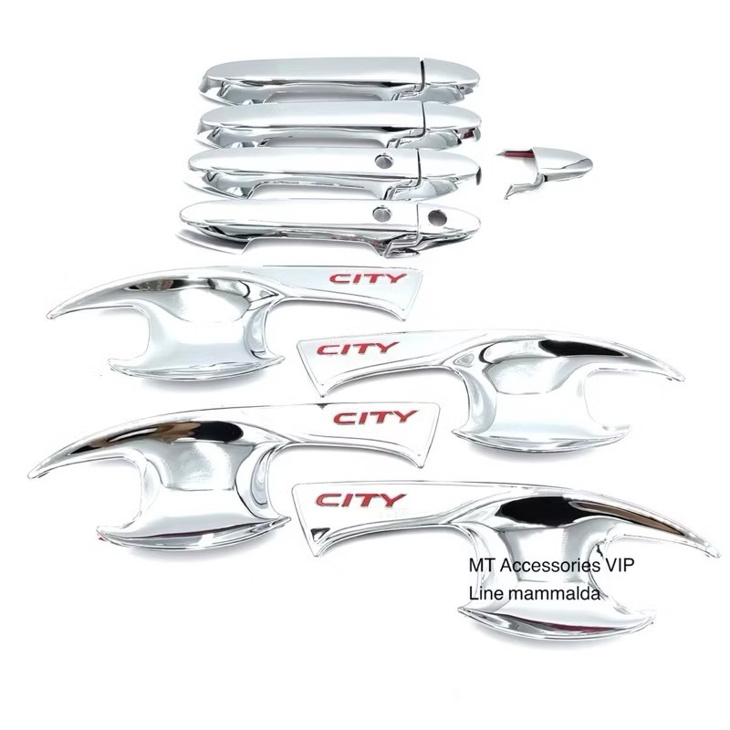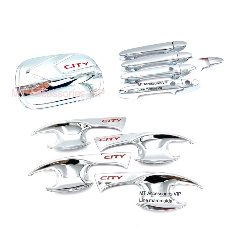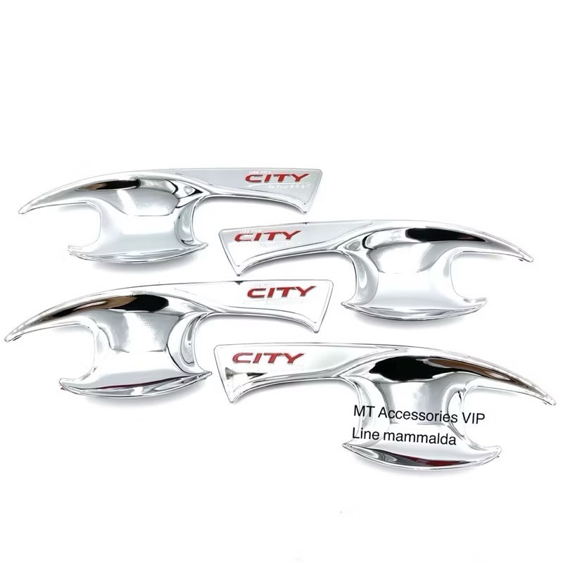 City ปี2020-2025 ซิตี้รุ่น4ประตู แยกชื้อได้ค่ะ เบ้ากันรอย ครอบมือจับ ครอบฝาถัง สีโครเมี่ยมโลโก้แดง