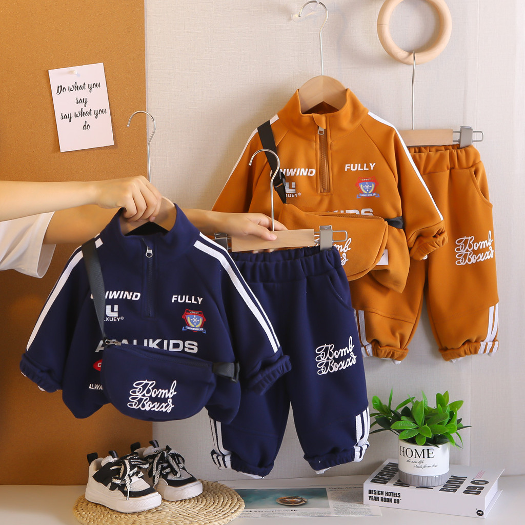ชุดเสื้อแขนยาวสำหรับทารกอายุ 1-5 ปี พร้อมกระเป๋าเก็บของ แฟชั่นฤดูใบไม้ผลิและใบไม้ร่วง