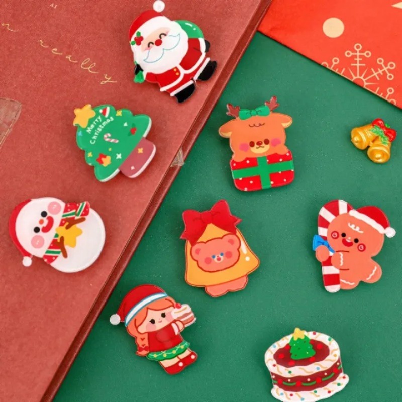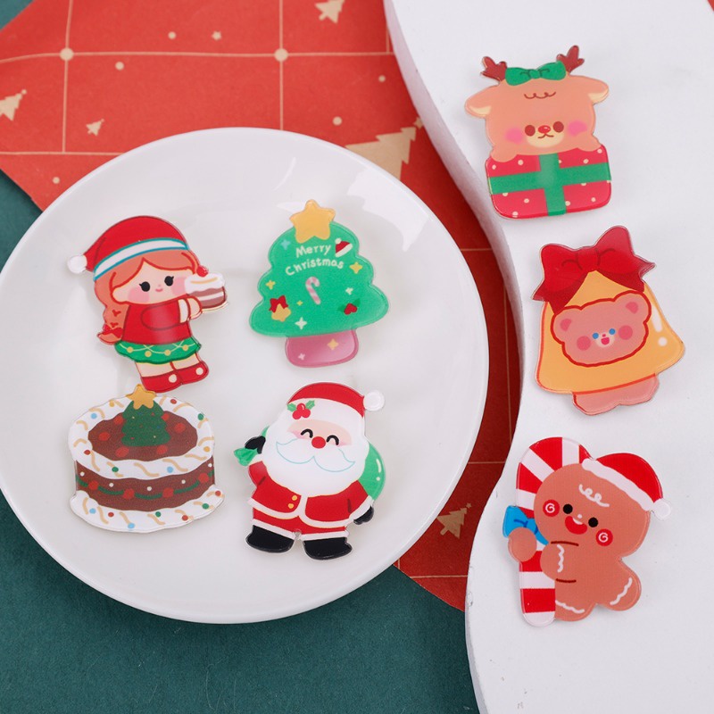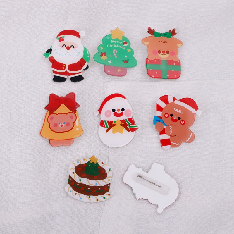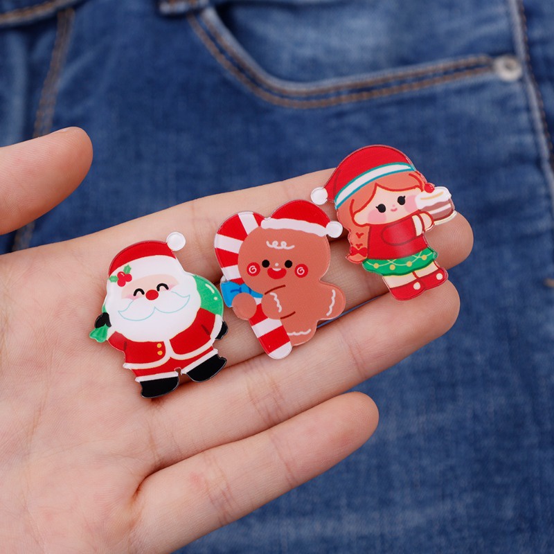 เข็มกลัดอะคริลิค ขนาดเล็ก ลายการ์ตูนคริสต์มาส สโนว์แมน ซานตาคลอส น่ารัก เหมาะกับของขวัญปีใหม่ สําหรับตกแต่งเสื้อผ้าเด็กนักเรียน