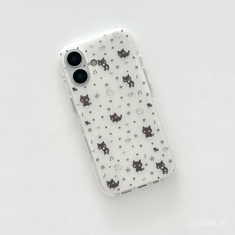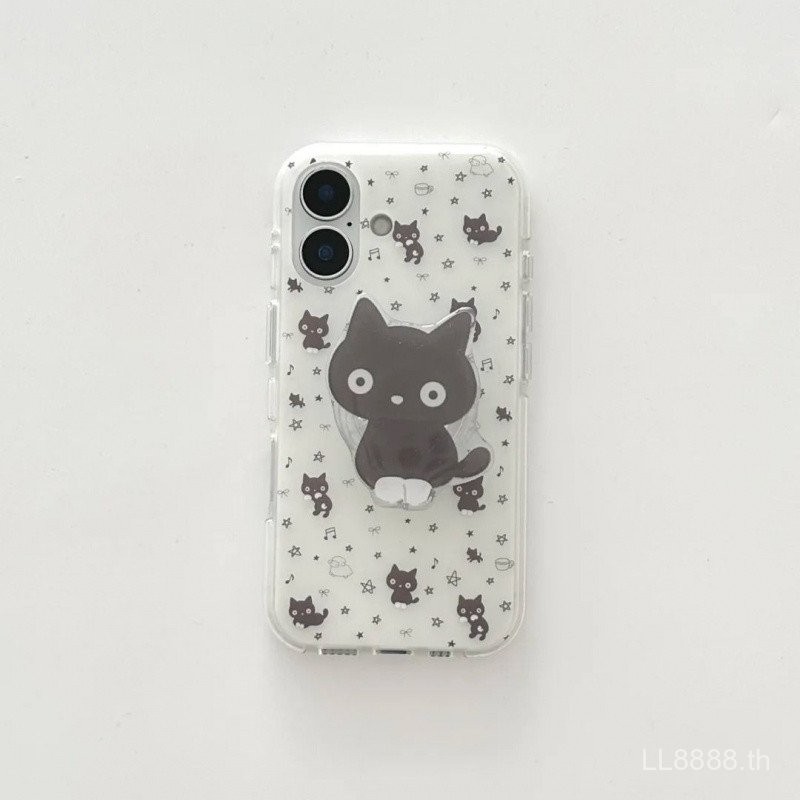 เคสโทรศัพท์มือถือสำหรับ iPhone ลายการ์ตูนลายดาวแมวดำพร้อมขาตั้ง16/15Promax/14รุ่นใหม่13/12/11pro เฉพาะกลุ่ม xsmax/XR PLUS สร้างสรรค์ป้องกันการตกรูใหญ่เคสป้องกันแบบครอบทั้งหมด21jh