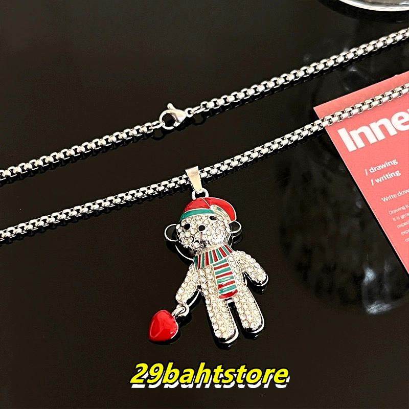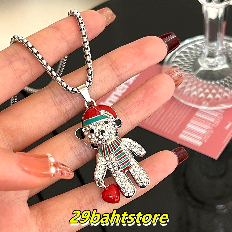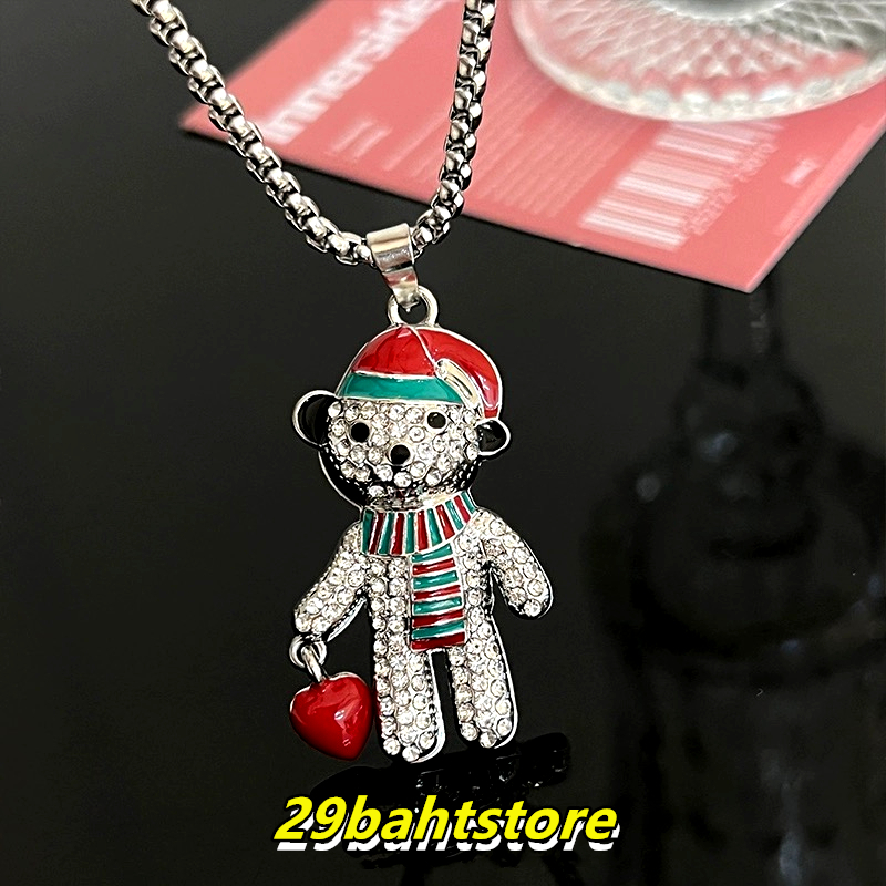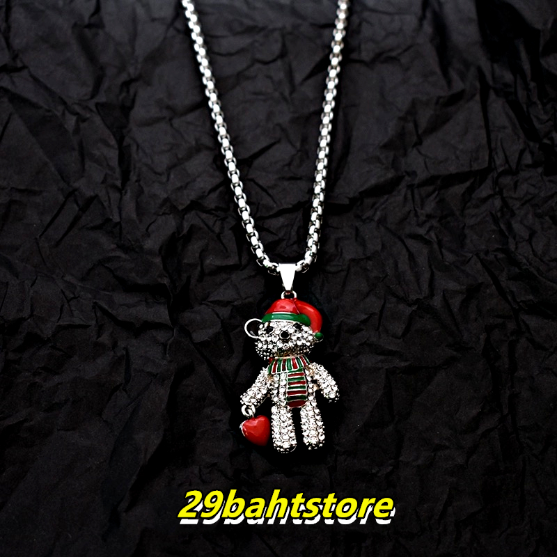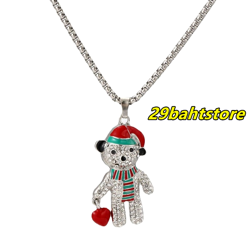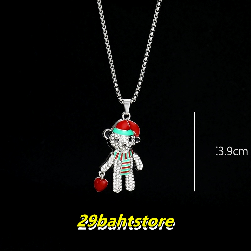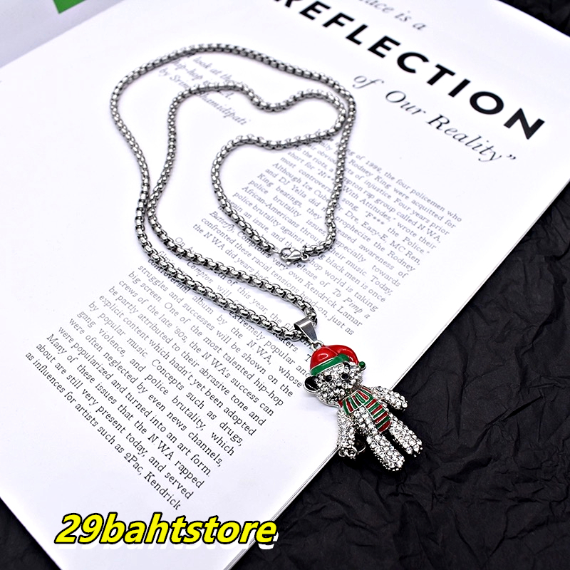 สร้อยคอหมีคริสต์มาส สร้อยคอเพชรแฟชั่นสไตล์ฮิพฮอพ ขายตรงจากโรงงาน ชิ้นละไม่ถึง 29 บาท ไม่ลอกหรือเปลี่ยนเป็นสีดำ