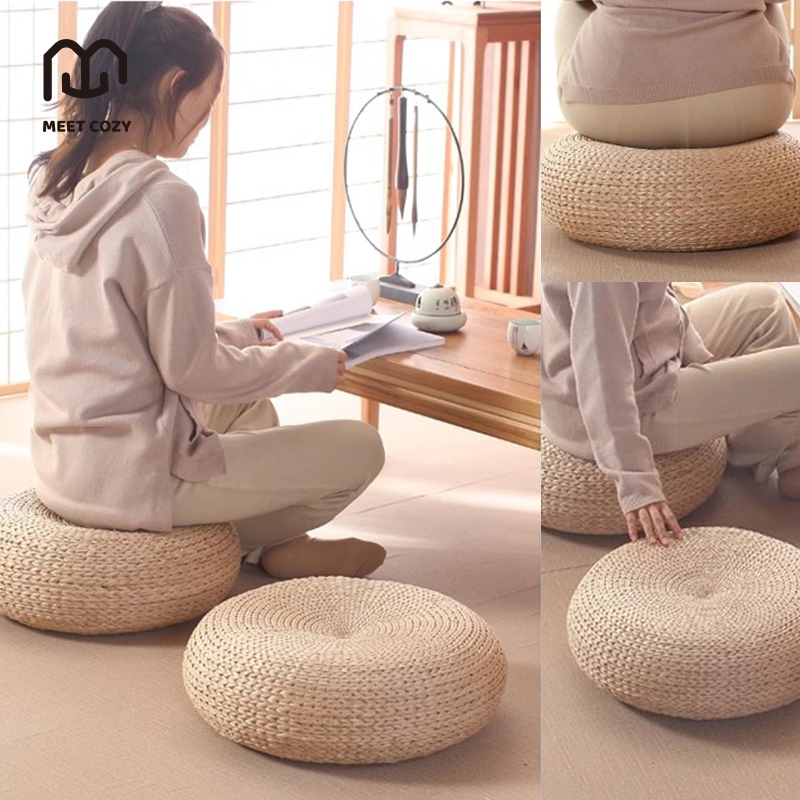MEET COZY เบาะรองนั่ง ขนาด40/50/60 สไตล์ญี่ปุ่น เก้าอี้นั่งเล่น เบาะถักฟาง# 1 B-D402