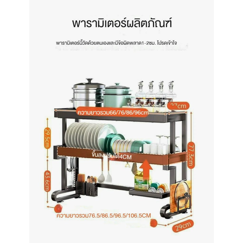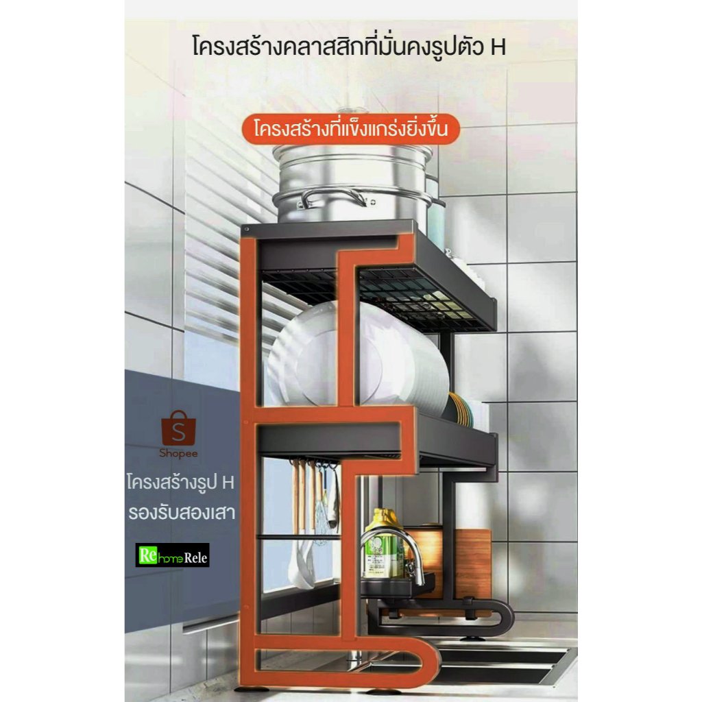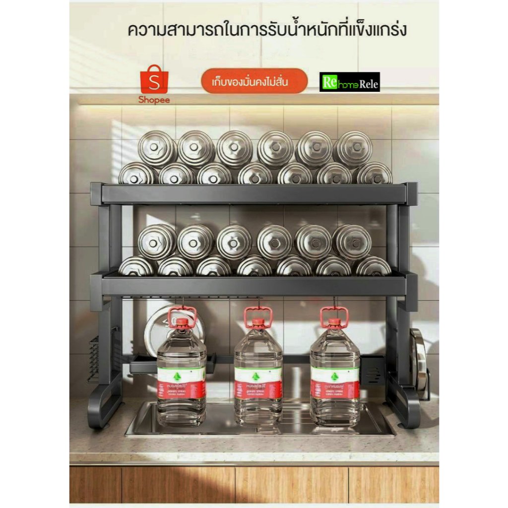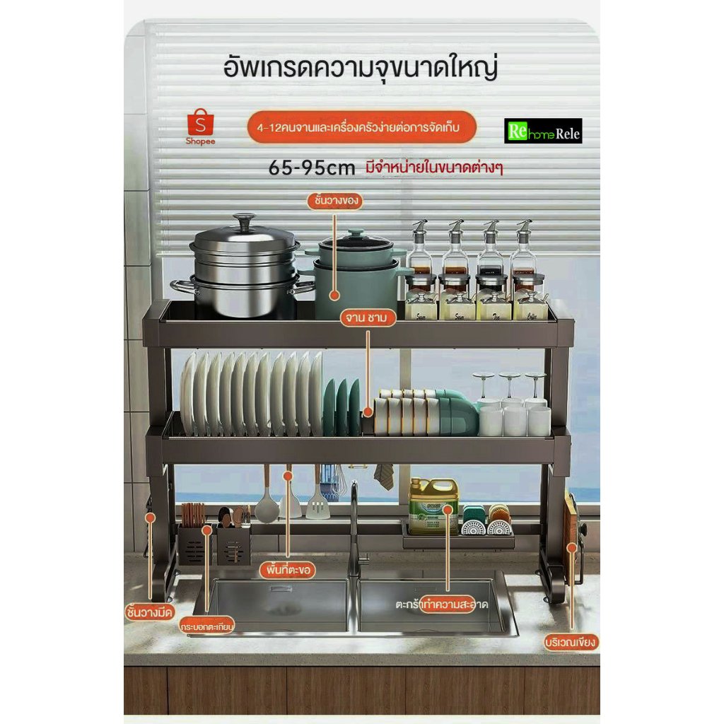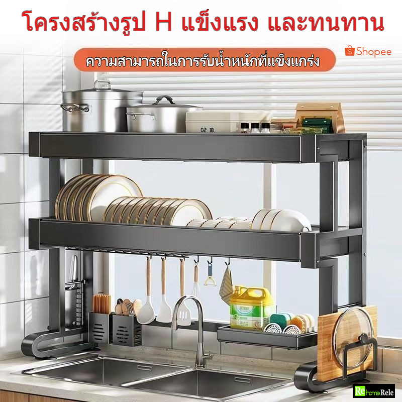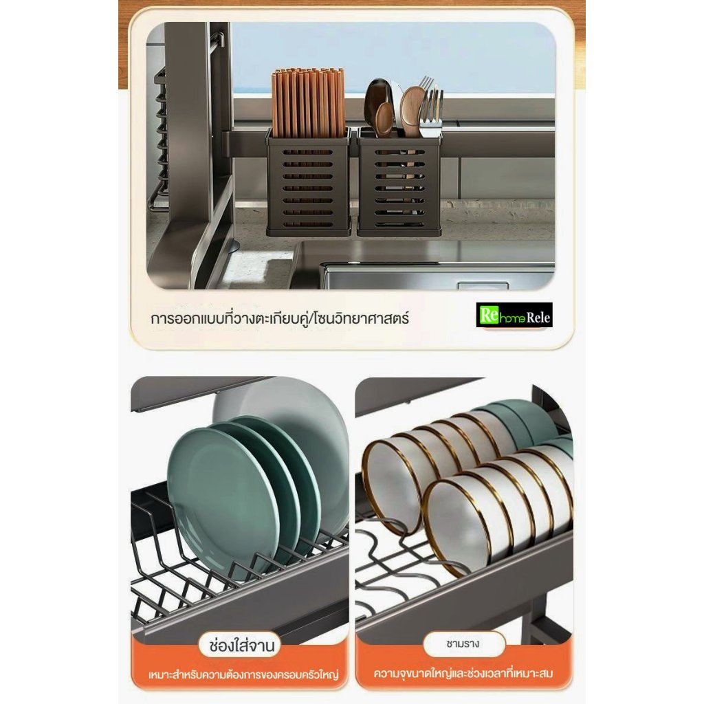 Rele ชั้นวางจาน โครงสร้างรูป H แข็งแรง ชั้นวางจานสแตนเลส คร่อมอ่างล้างจาน ที่คว่ําจาน 2 ชั้น 105ซม.ที่เก็บจาน Dish Rack