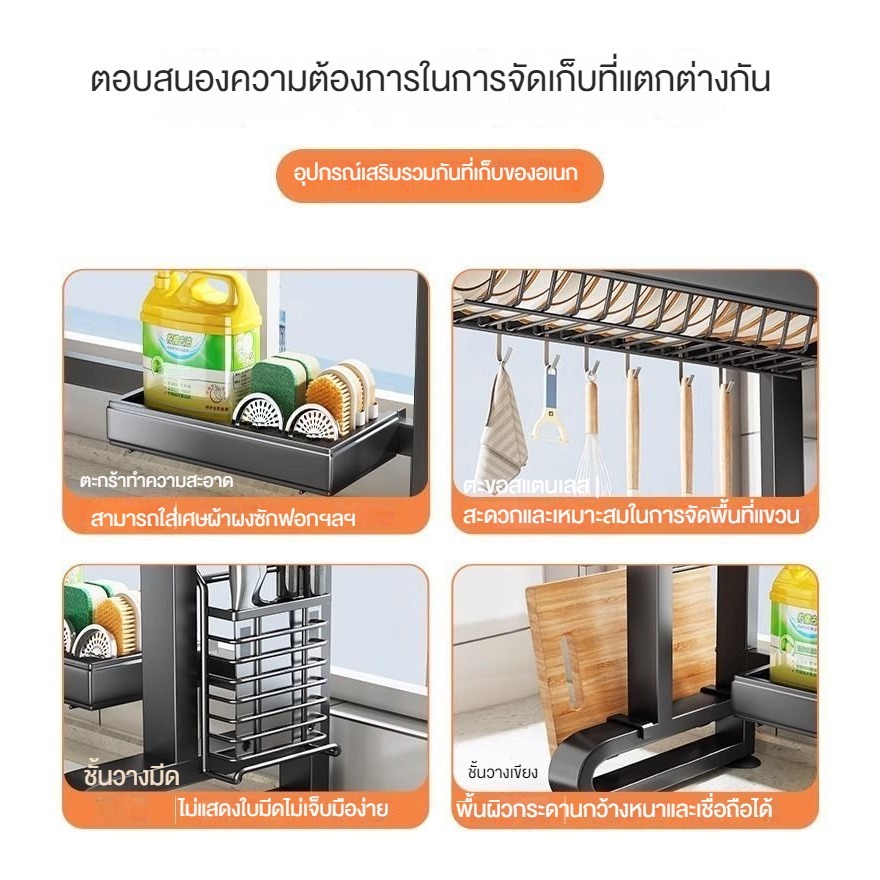 Rele ชั้นคว่ำจาน ที่คว่ำจาน ชั้นวางจานชามในครัว ชั้นวางถ้วยจาน สแตนเลส คร่อมซิงค์?อัพเกรดโครงสร้าง?ขนาดใหญ่ บนซิงค์ R23