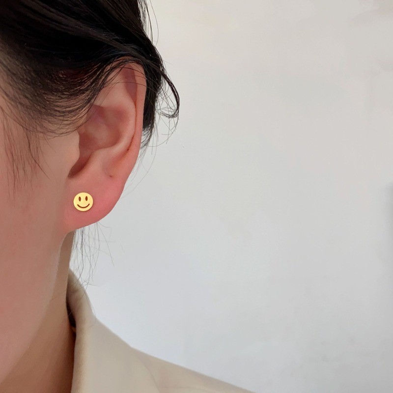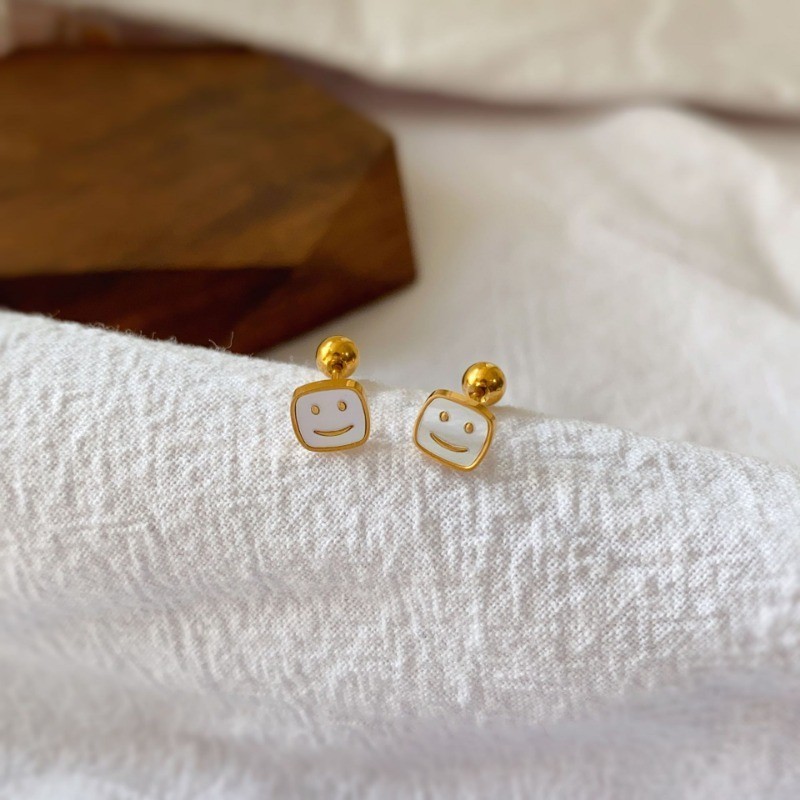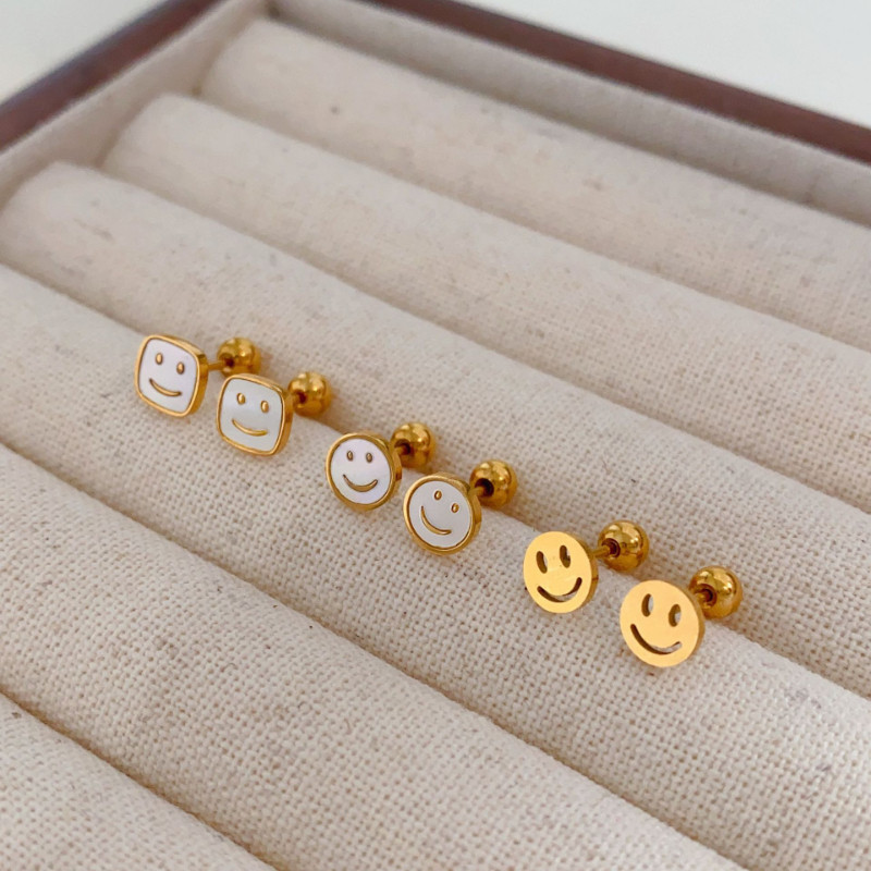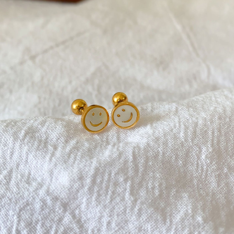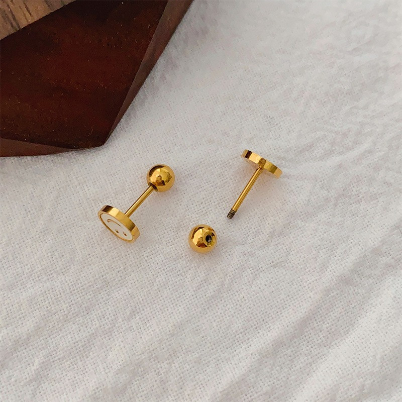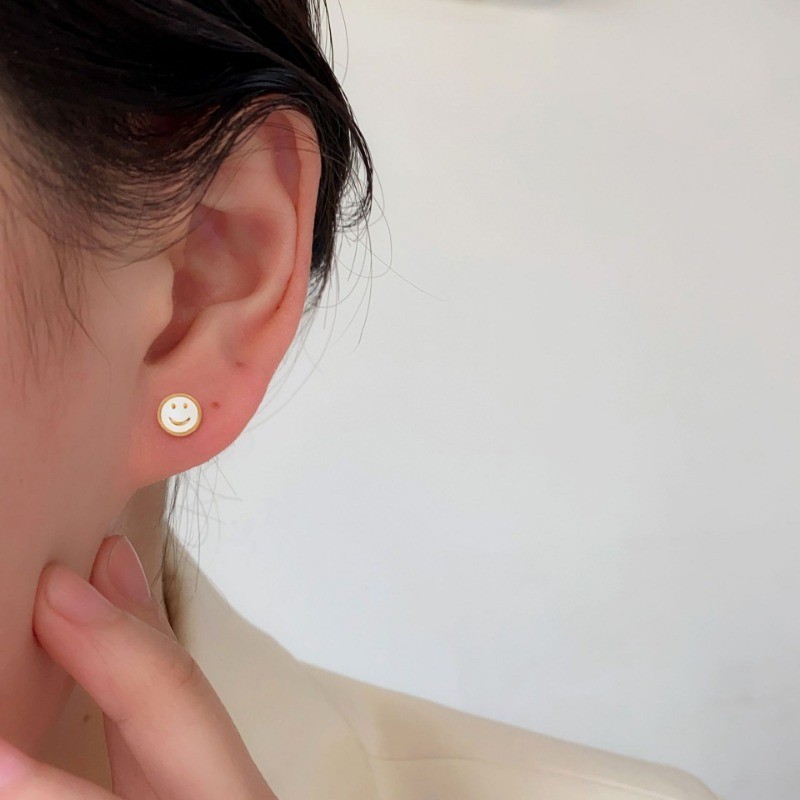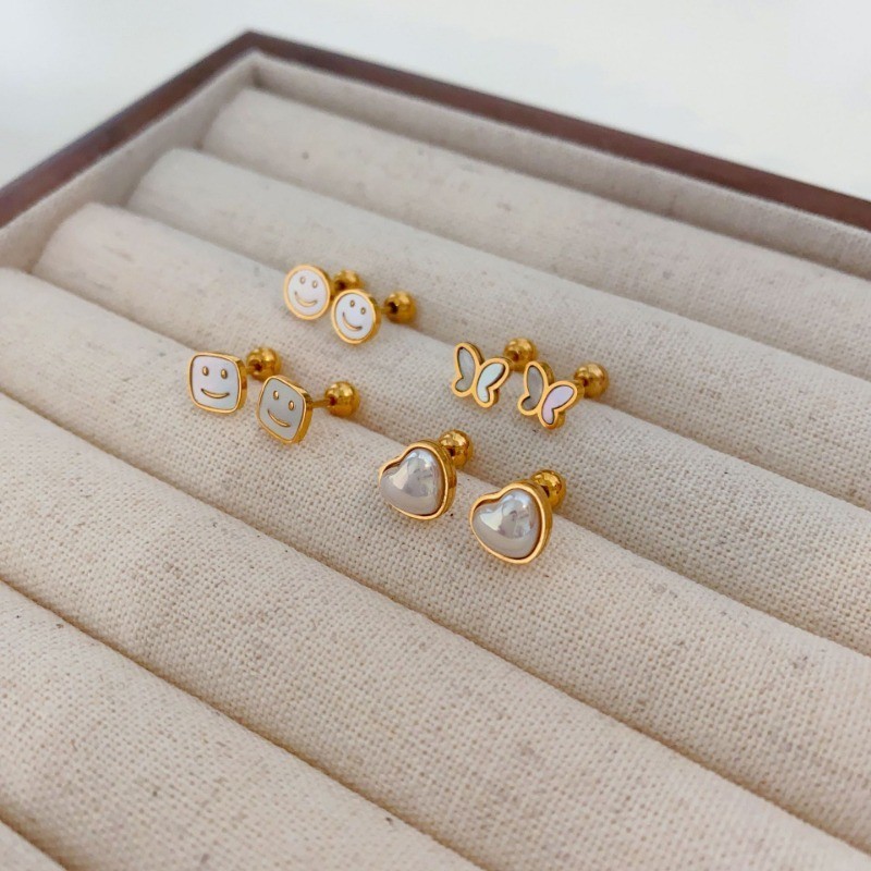 ต่างหูเหล็กไทเทเนียม รูปผีเสื้อ หน้ายิ้ม ขนาดเล็ก สีขาว