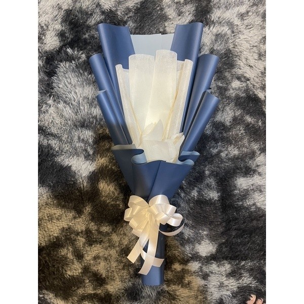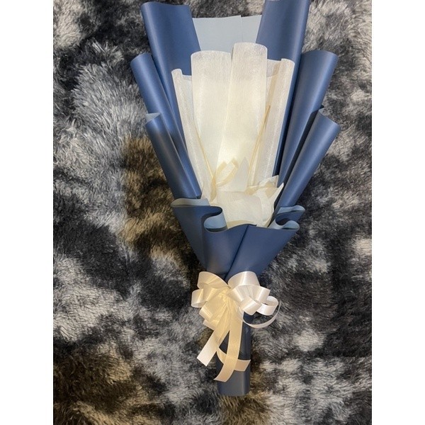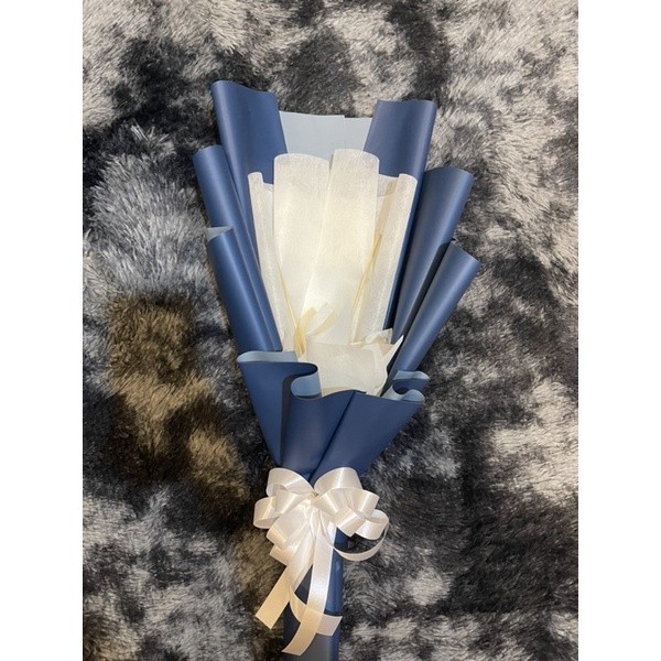 ช่อเปล่า น้ำเงินกระดาษสา แถมที่ใส่ธนบัตร 15ใบ