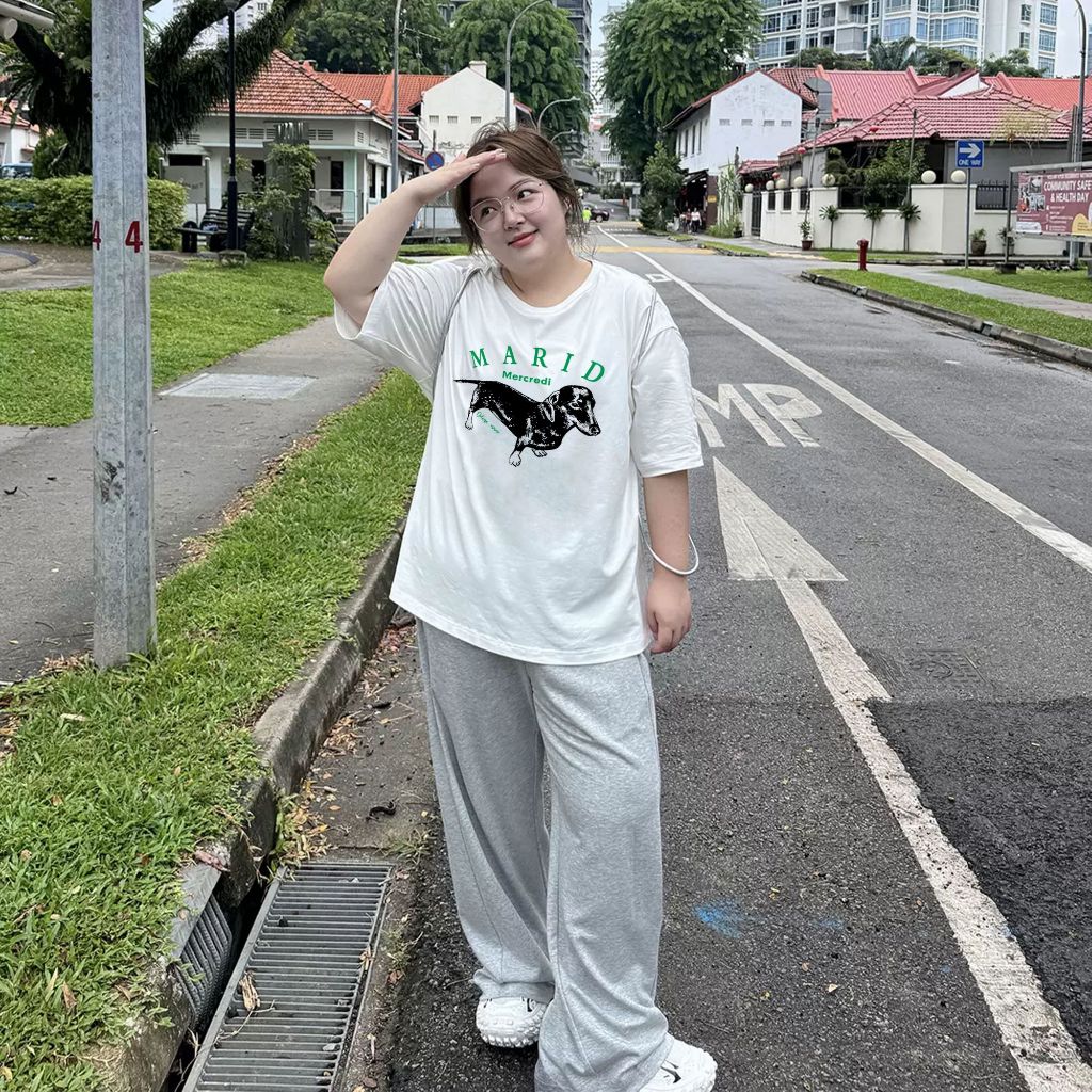 TeddyTee ใหม่? เสื้อยืด Oversize สำหรับสาวอวบ พลัสไซส์ ทรงหลวม พรางหุ่นผ้าCOTTON100% ลาย MARDI คอกลม ใส่สบาย T009