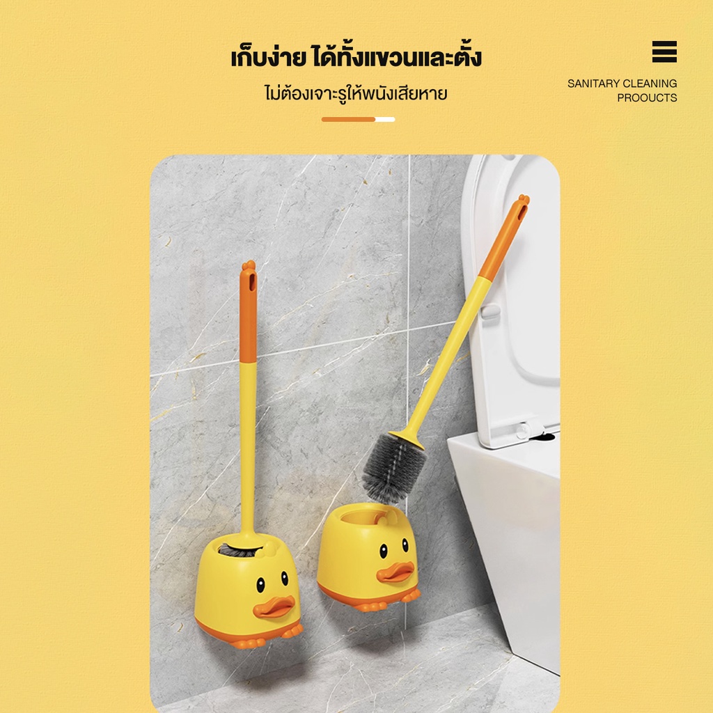 ที่ขัดส้วม แปรงขัดส้วม รูปเป็ดน้อยพร้อมฐานตั้ง 50CMได้ทั้งแขวนและตั้งไม่ต้องเจาะรูให้พนังเสียหาย
