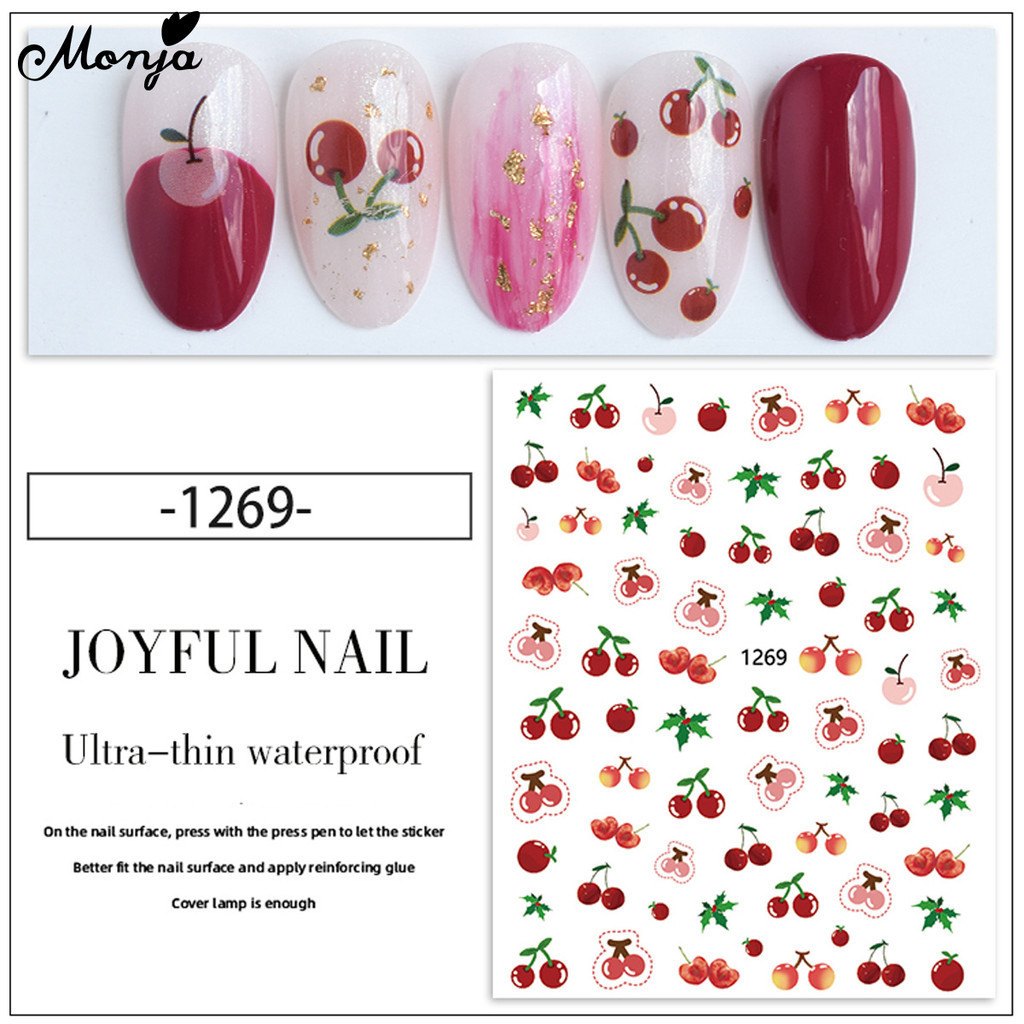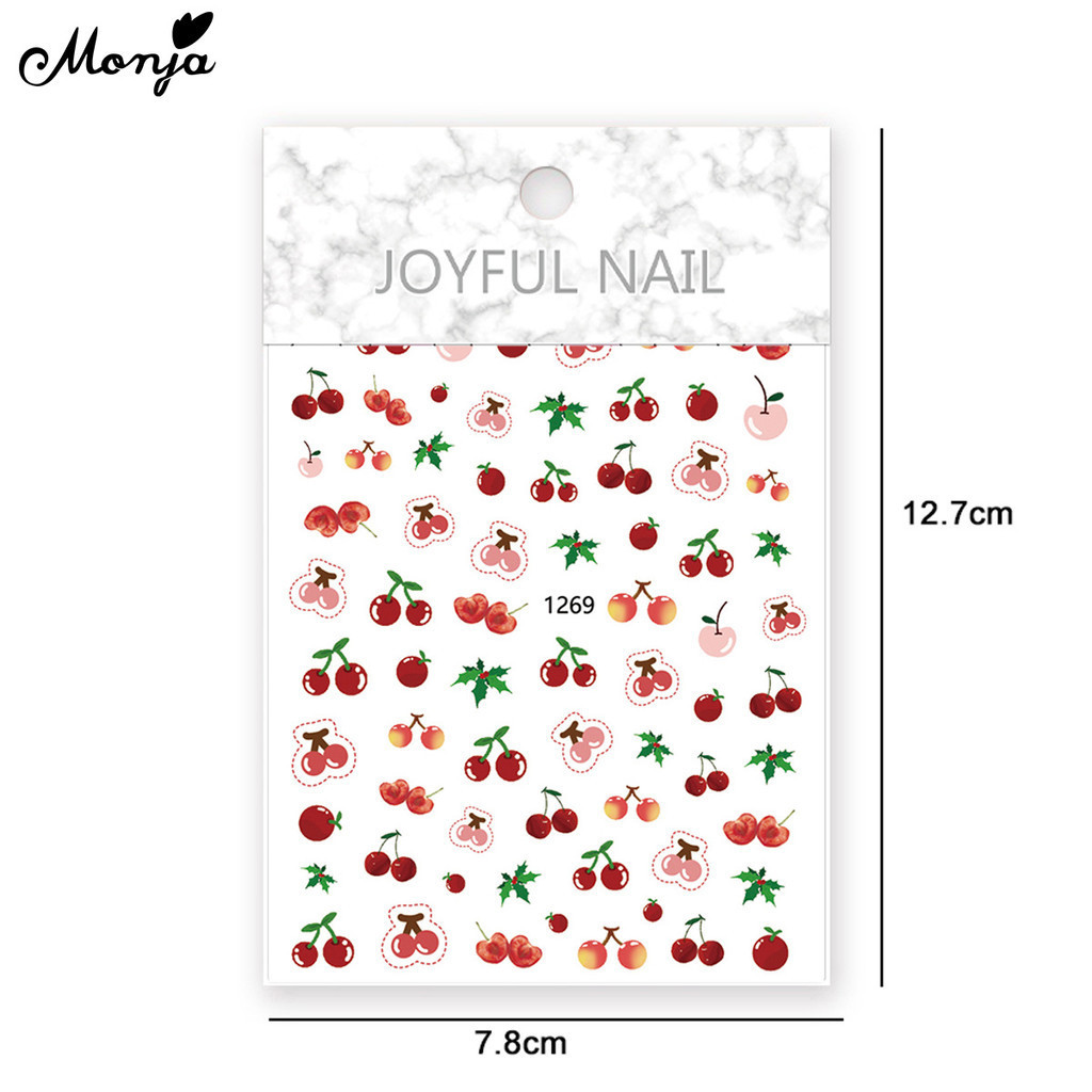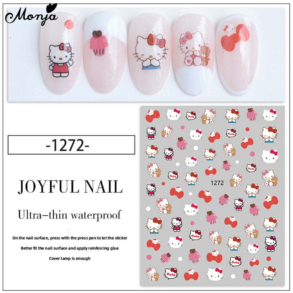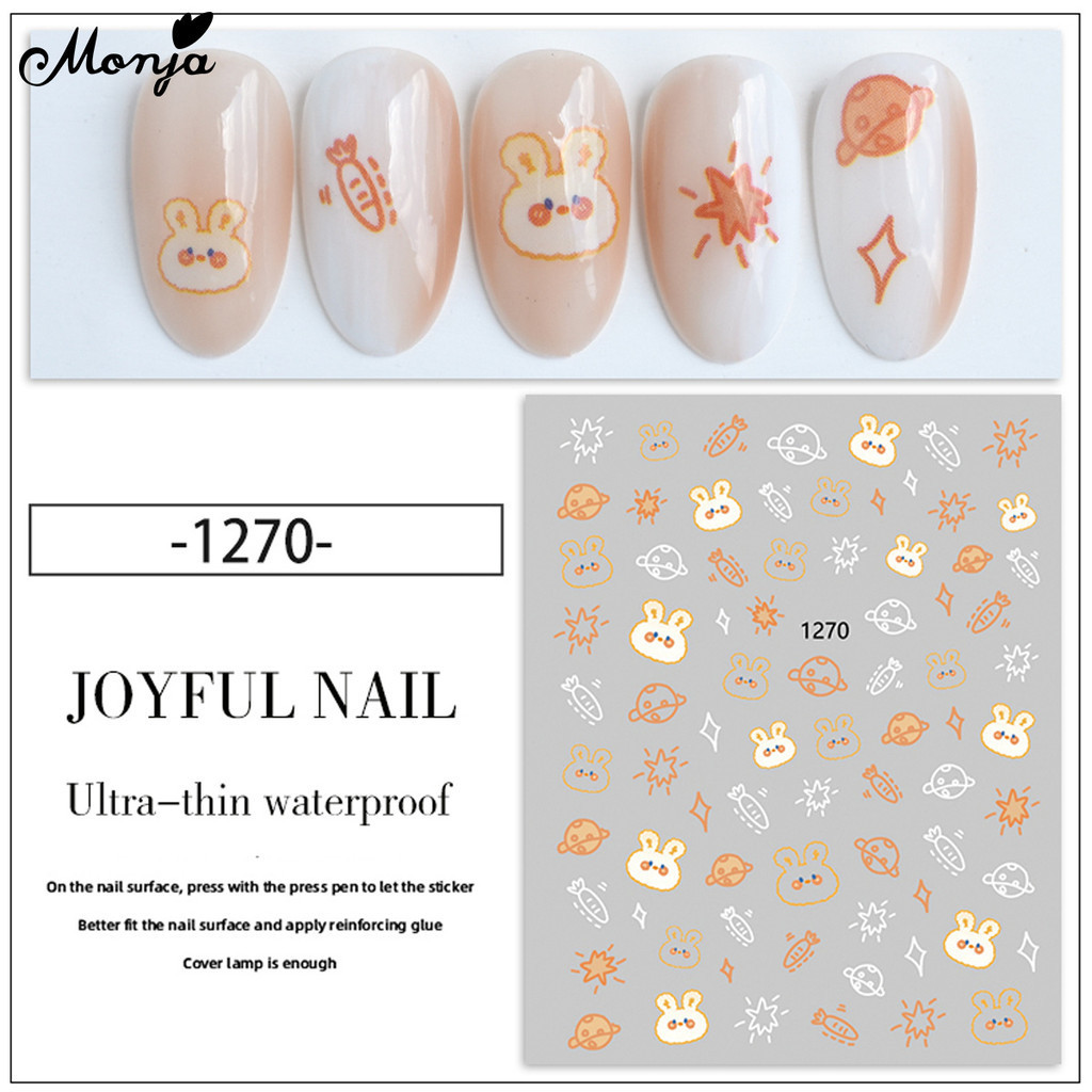 Monja สติกเกอร์โฮโลแกรม ลายแมว กระต่าย หมี สตรอเบอร์รี่ มีกาวในตัว สําหรับตกแต่งเล็บ DIY