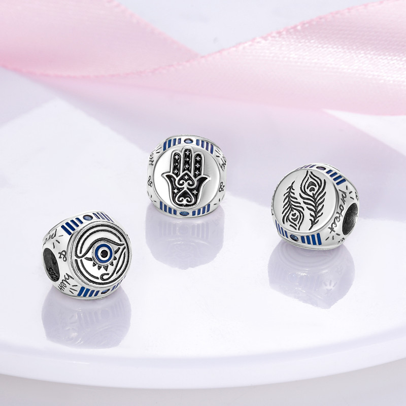 แท้ ลูกปัดเงิน 925 ลายดวงจันทร์ ดวงดาว ตาชั่วร้าย 3 ด้าน สําหรับสร้อยข้อมือ ลูกปัดเงิน 925 Diy