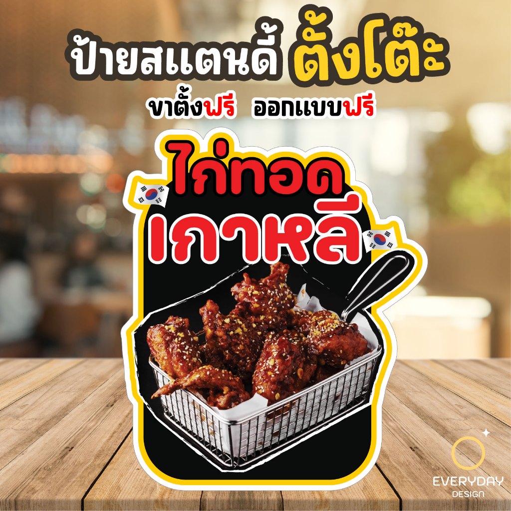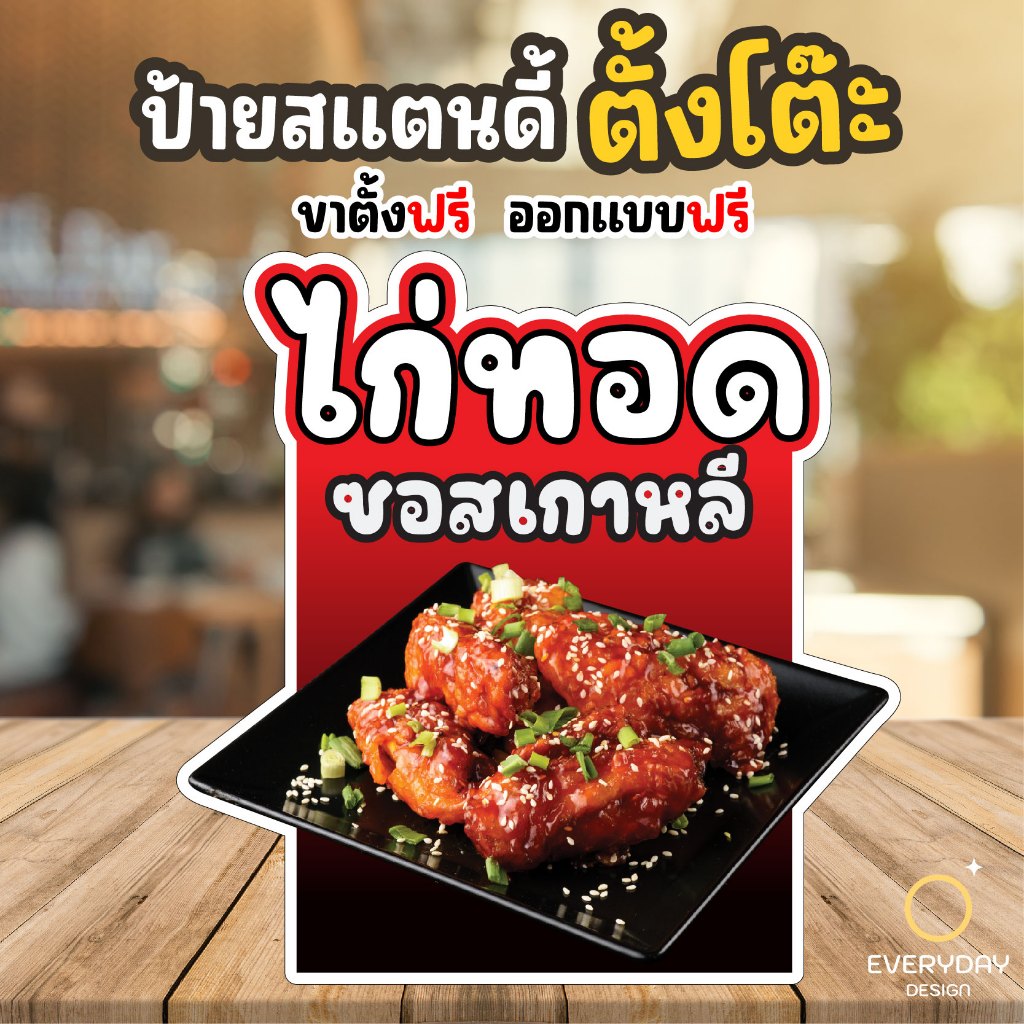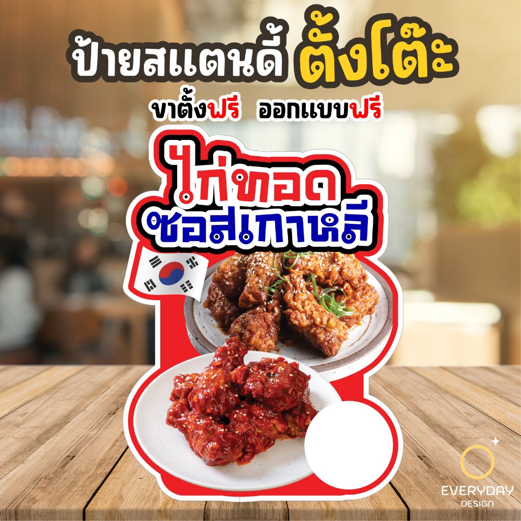 ป้ายไก่ทอดซอสเกาหลี ข้าวเหนียวไก่ทอด ป้ายสแตนดี้ตั้งโต๊ะ พร้อมขาตั้ง ขนาด A4 A3 A2 A1 ป้ายฟิวเจอร์บอร์ด พร้อมส่ง