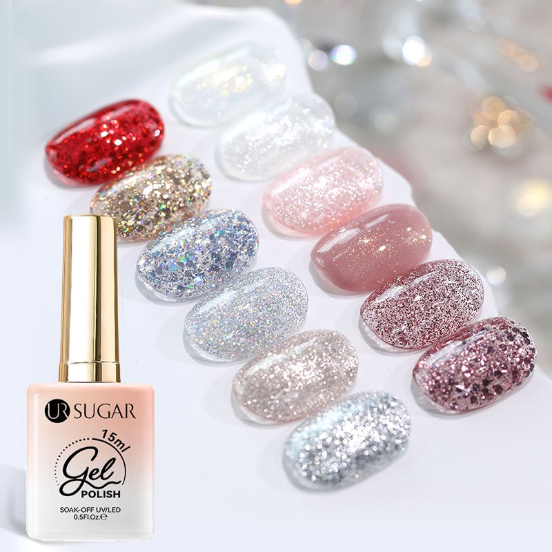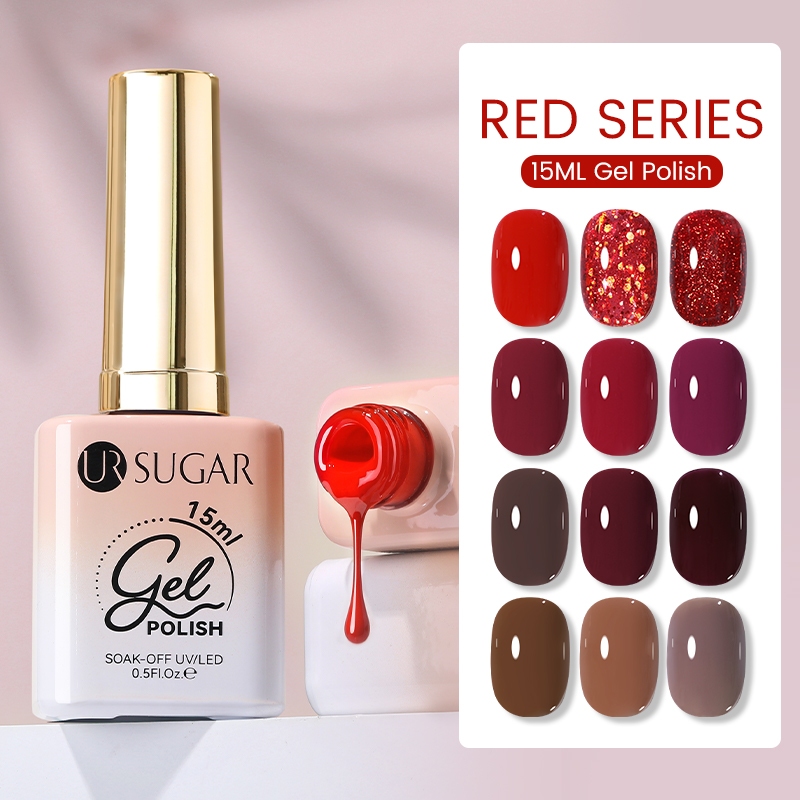 Ur SUGAR ยาทาเล็บเจลสีสันสดใส ติดทนนาน 15ML Red Soak Off UV Nail Art Gel 60 สี