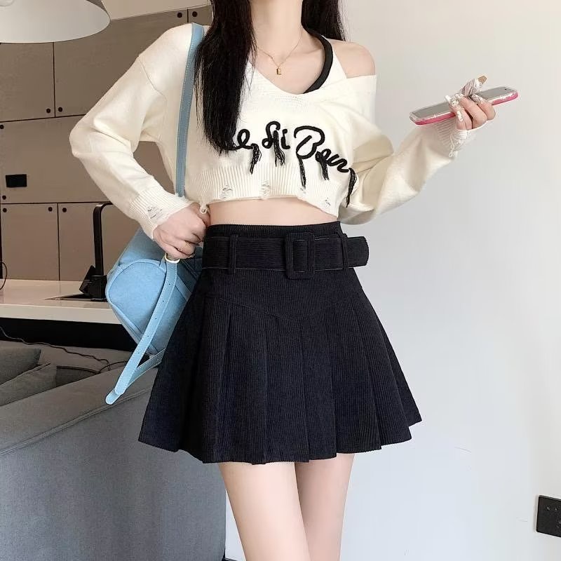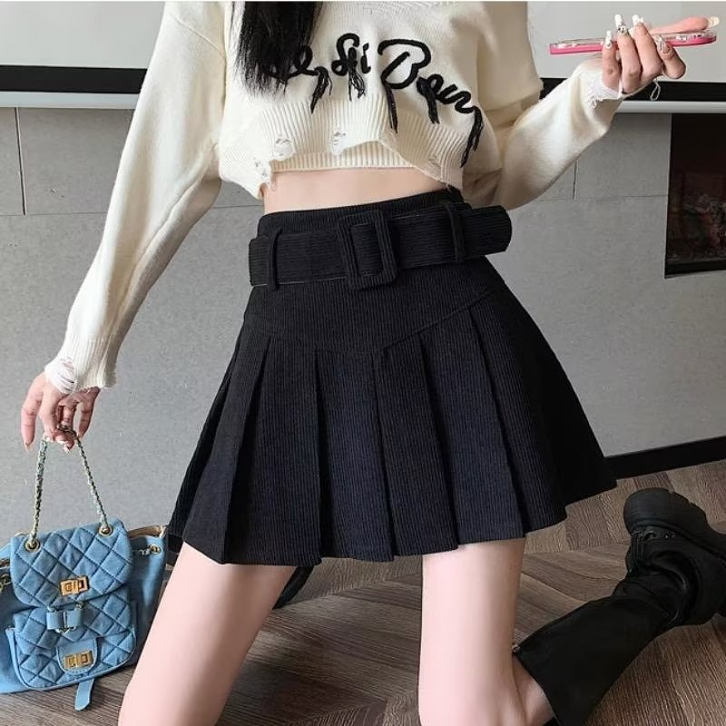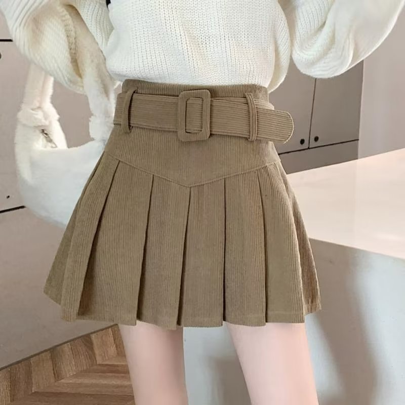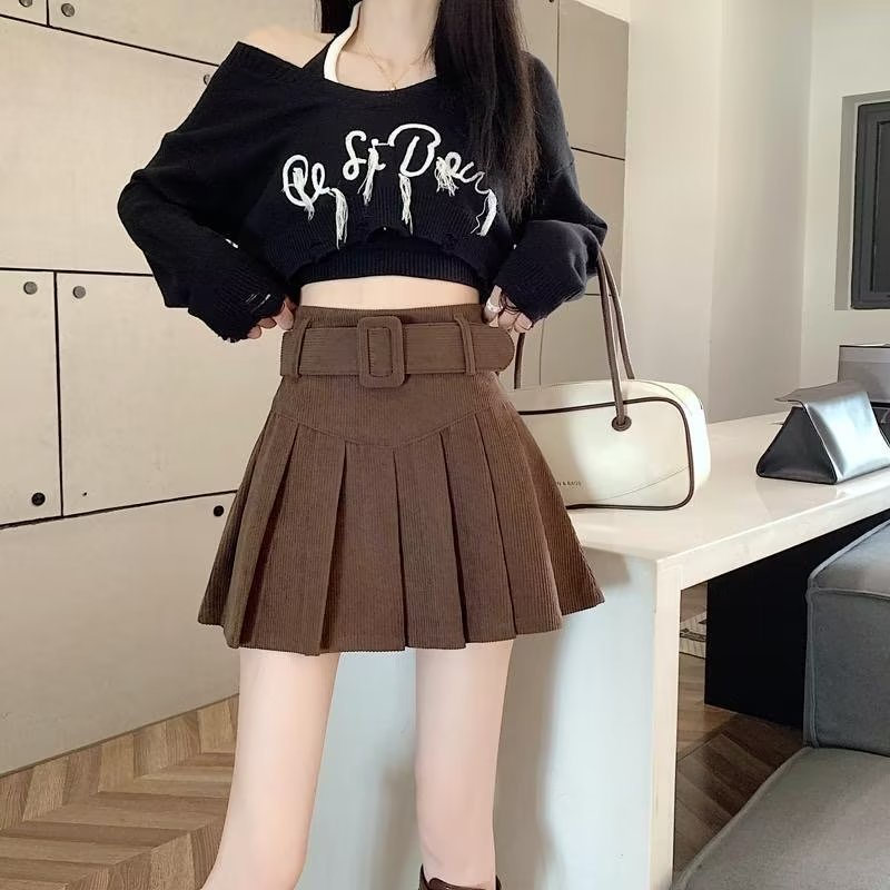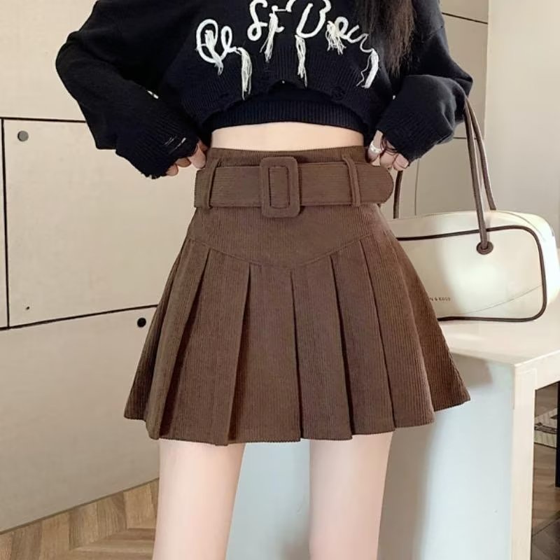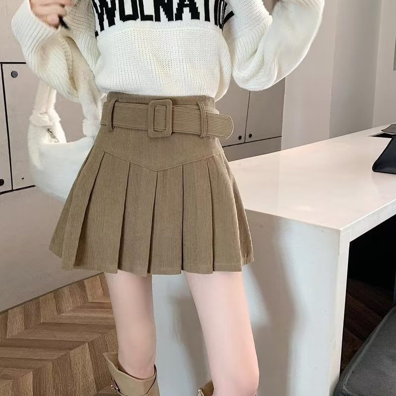 กระโปรงสั้น ผ้าลูกฟูก เอวสูง ทรงเอ ป้องกันแสงสะท้อน แฟชั่นฤดูใบไม้ร่วง และฤดูหนาว สําหรับผู้หญิง 2023