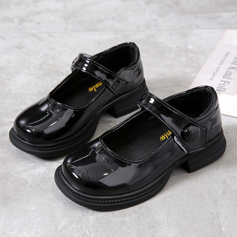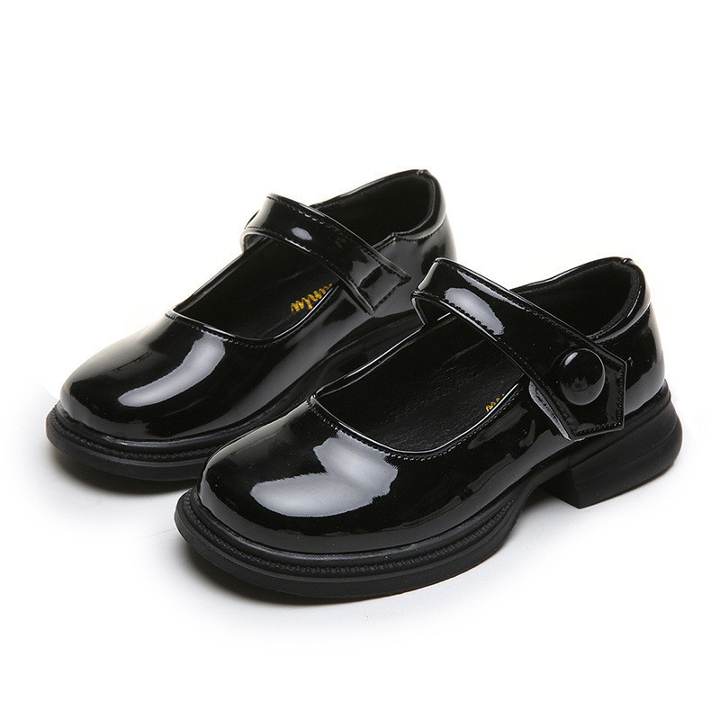 รองเท้าเจ้าหญิงเด็กผู้หญิง 2024 ใหม่แฟชั่นรองเท้าหนังพื้นนุ่มรุ่นเกาหลีเด็กใหญ่รองเท้าส้นเตี้ยสีดํารองเท้าประสิทธิภาพ