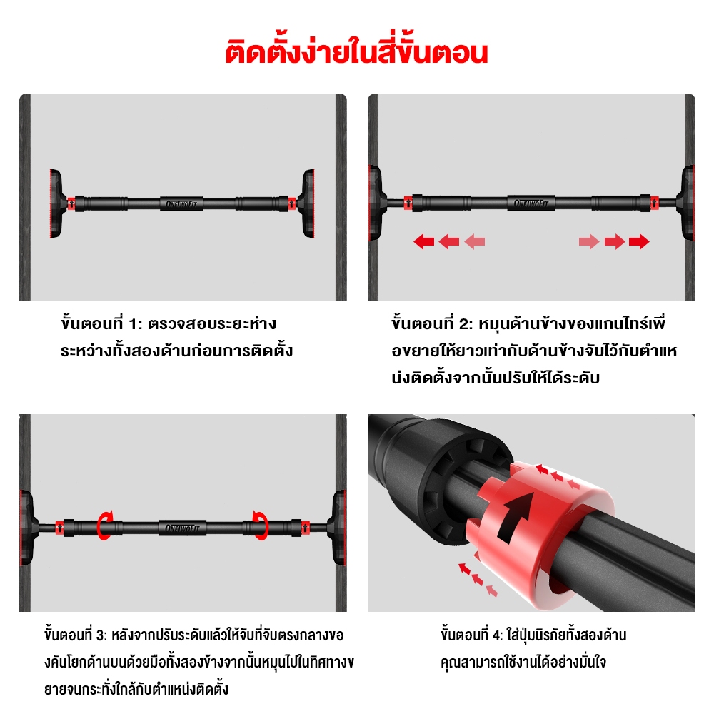 OneTwoFit Pull Up Bar บาร์โหนติดประตู 60-100 ซม. บาร์ออกกำลังกาย อุปกรณ์ฝึกความแข็งแรง
