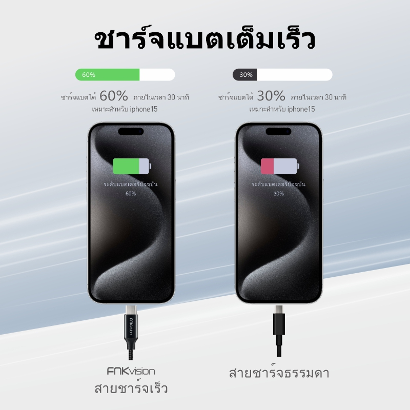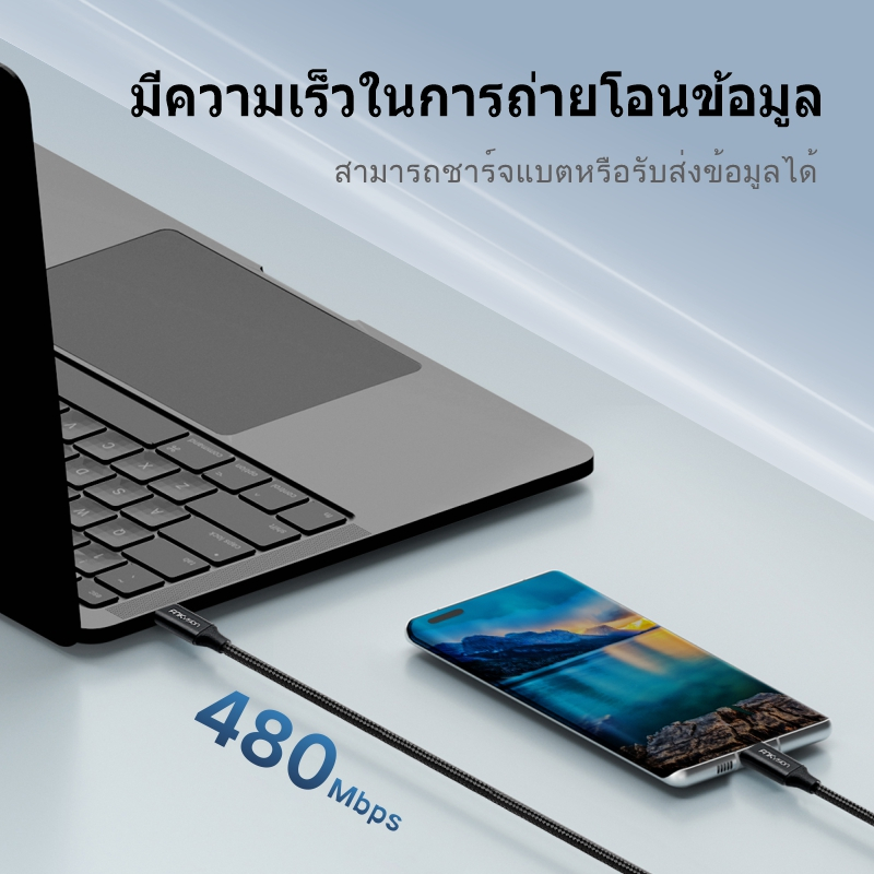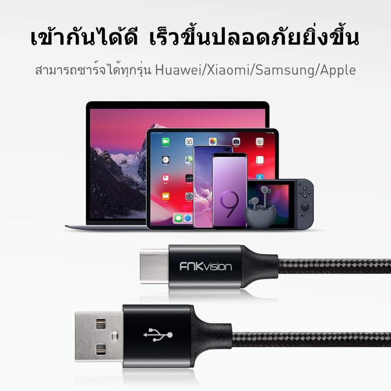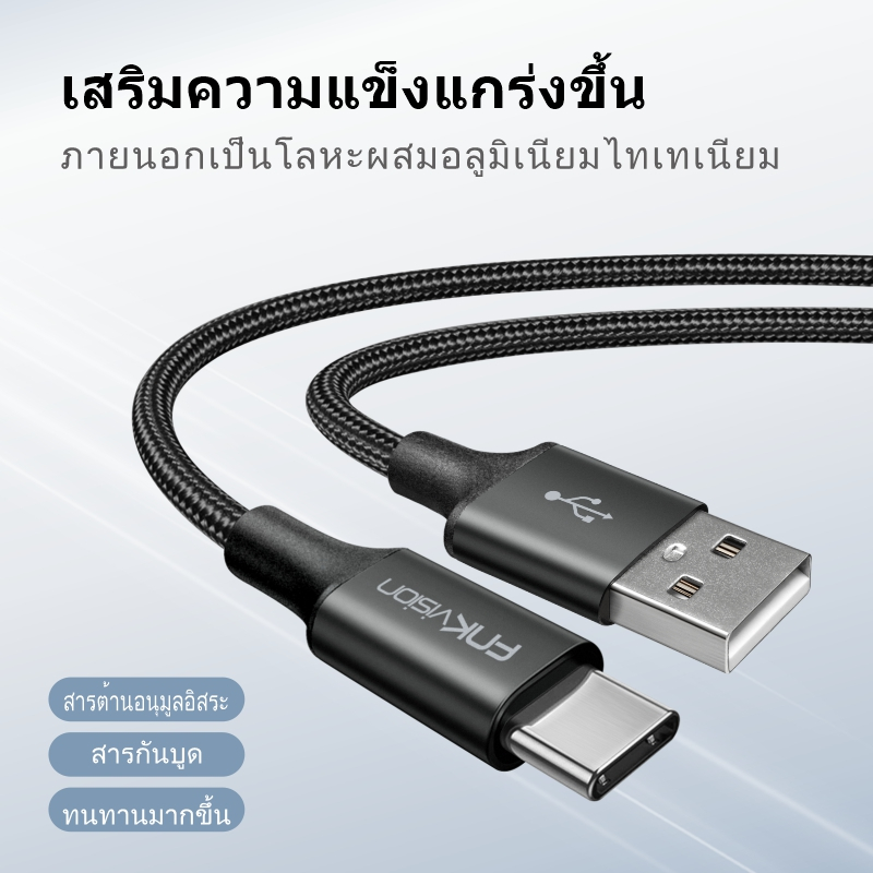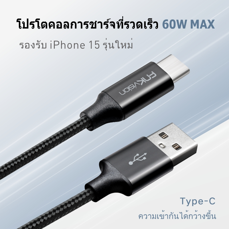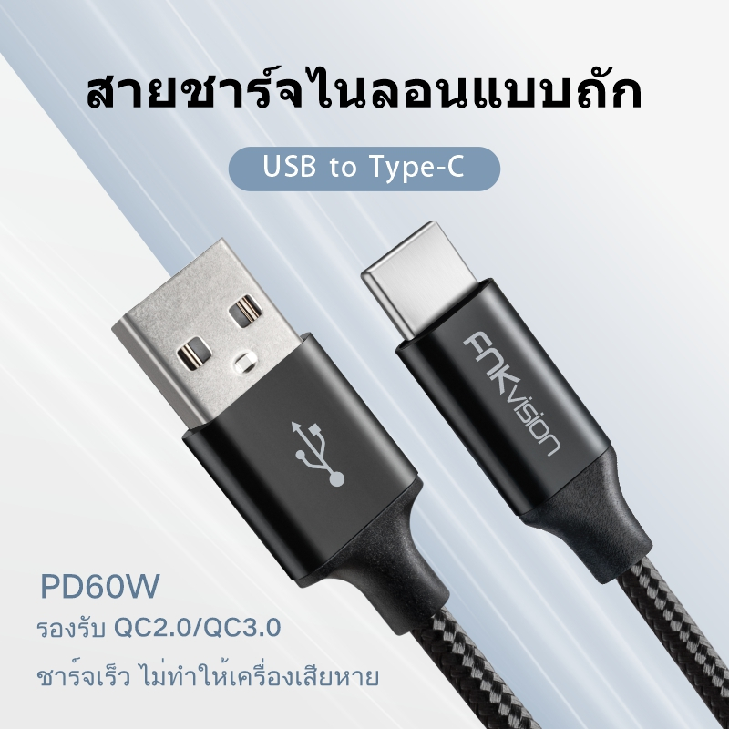 FNKvision สายเคเบิล USB ถึง Type C 6A 60W ชาร์จเร็ว ถ่ายโอนข้อมูล 480mbps สายเคเบิล A ถึง C