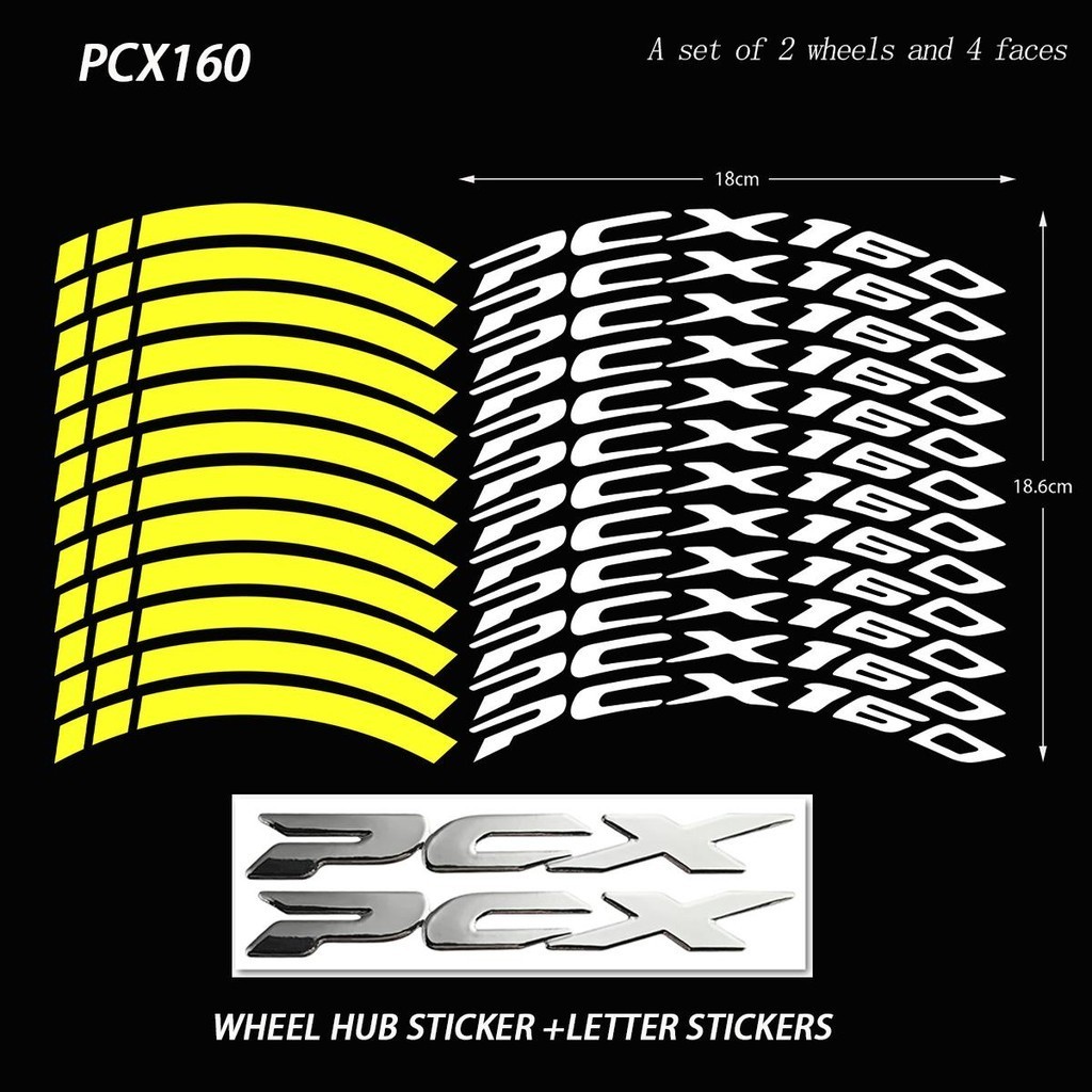 สติกเกอร์เรซิ่น สะท้อนแสง ลายโลโก้รถจักรยานยนต์ 3D กันน้ํา สําหรับติดตกแต่งขอบล้อรถยนต์ Honda PCx160 1 ชุด